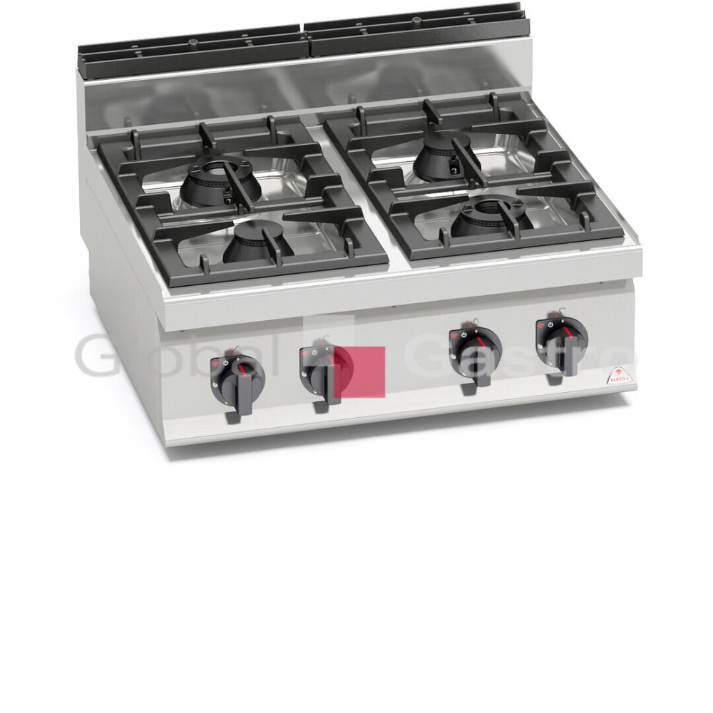 Příprava jídel přímo na plameni je u všech kuchařů nezbytná pro zdůraznění tradičních kulinářských dovedností. Tvar litinových roštů tvoří optimální pracovní plochu pro snadnou manipulaci s nádobím. Silné litinové hořáky 7 kW zaručují nadstandardní výkon a životnost. Vysoká energetická účinnost plynových hořáků umožňuje uspořit nejméně 30% plynu ročně v porovnání s tradičními hořáky. Odkapové vaničky pod hořáky mají zaoblené hrany, jsou kompletně odnímatelné. Vše je navrženo tak, aby byla snadná údržba a čištění.