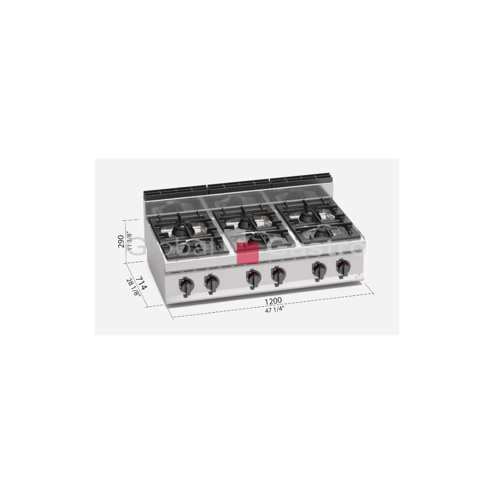 Příprava jídel přímo na plameni je u všech kuchařů nezbytná pro zdůraznění tradičních kulinářských dovedností. Tvar litinových roštů tvoří optimální pracovní plochu pro snadnou manipulaci s nádobím. Silné litinové hořáky 3,5 kW a 7 kW zaručují nadstandardní výkon a životnost. Vysoká energetická účinnost plynových hořáků umožňuje uspořit nejméně 30% plynu ročně v porovnání s tradičními hořáky. Odkapové vaničky pod hořáky mají zaoblené hrany, jsou kompletně odnímatelné. Vše je navrženo tak, aby byla snadná údržba a čištění.