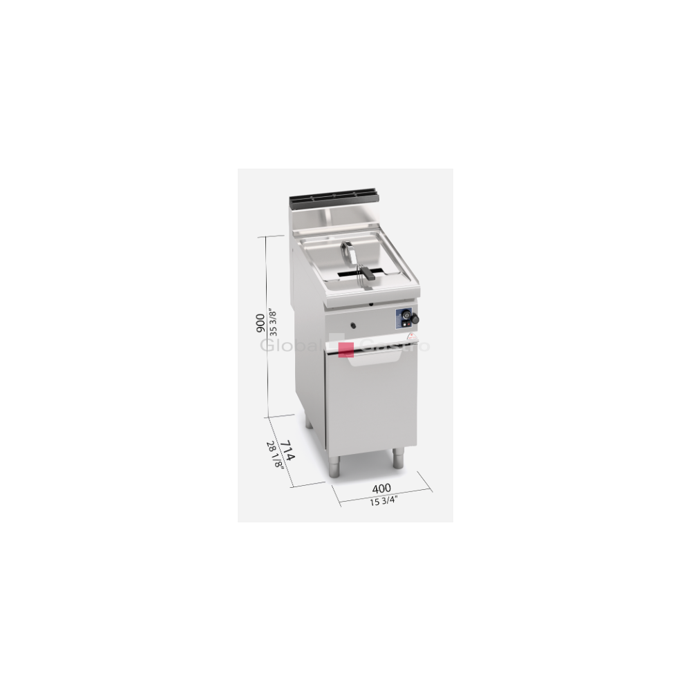 nebo teploty do 190°C. Teoretický výkon 1 vana (plynová fritéza 12 kg/h a elektrická 25 kg/h). Dodáváno s křídlovými dvířky a jedním základním košem/vana (Příplatkově: VYŠŠÍ VÝKON U ELEKTRICKÝCH MODELŮ 9 kW/2x 9kW, C2 = 2koše/vana).