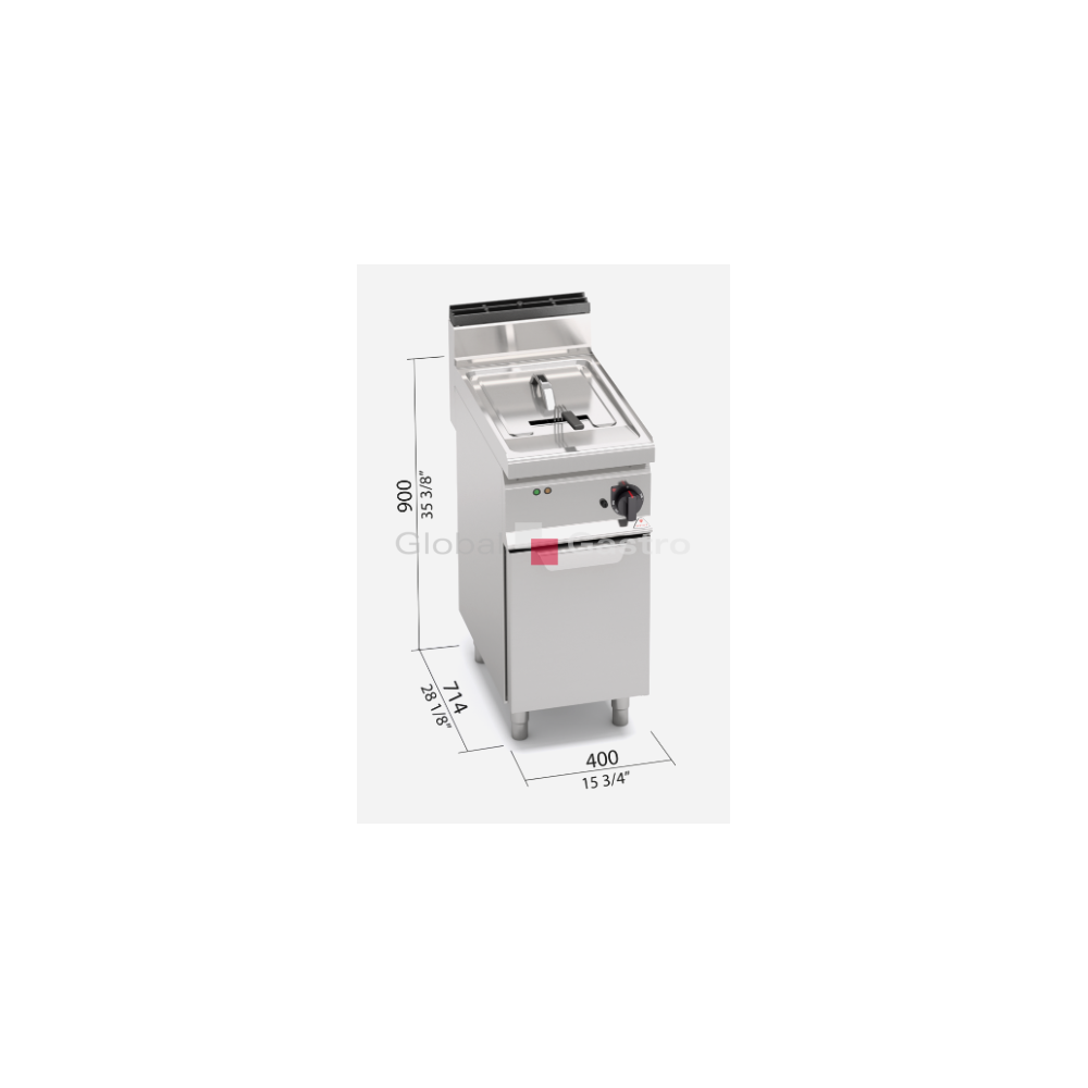 Topné těleso umístěné přímo ve vaně. Snažší čištění umožňuje odklopení topného tělesa směrem nahoru. Bezpečnostní zařízení pro přerušení napájení při odklopení spirály nahoru. Kontrola teploty termostatem od 80 °C až 190 °C s přesnějším zjišťování teploty díky senzorům umístěným ve vaně. Světelná signalizace ovládání s indikátorem teploty. Kompaktní provedení s uzavřeným podstavcem.