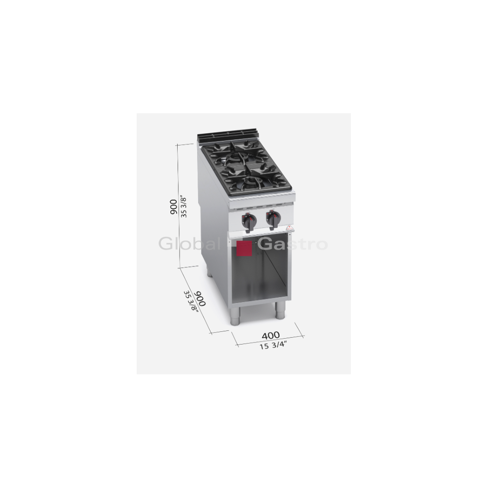 Příprava jídel přímo na plameni je u všech kuchařů nezbytná pro zdůraznění tradičních kulinářských dovedností. Tvar litinových roštů tvoří optimální pracovní plochu pro snadnou manipulaci s nádobím. Silné litinové hořáky s výkonem 3,5 kW, 7 kW a 12 kW se zaručují nadstandardní životnost. Vysoká energetická účinnost plynových hořáků umožňuje uspořit nejméně 30% plynu ročně v porovnání s tradičními hořáky. Odkapové vaničky pod hořáky mají zaoblené hrany, jsou kompletně odnímatelné. Vše je navrženo tak, aby byla snadná údržba a čištění.