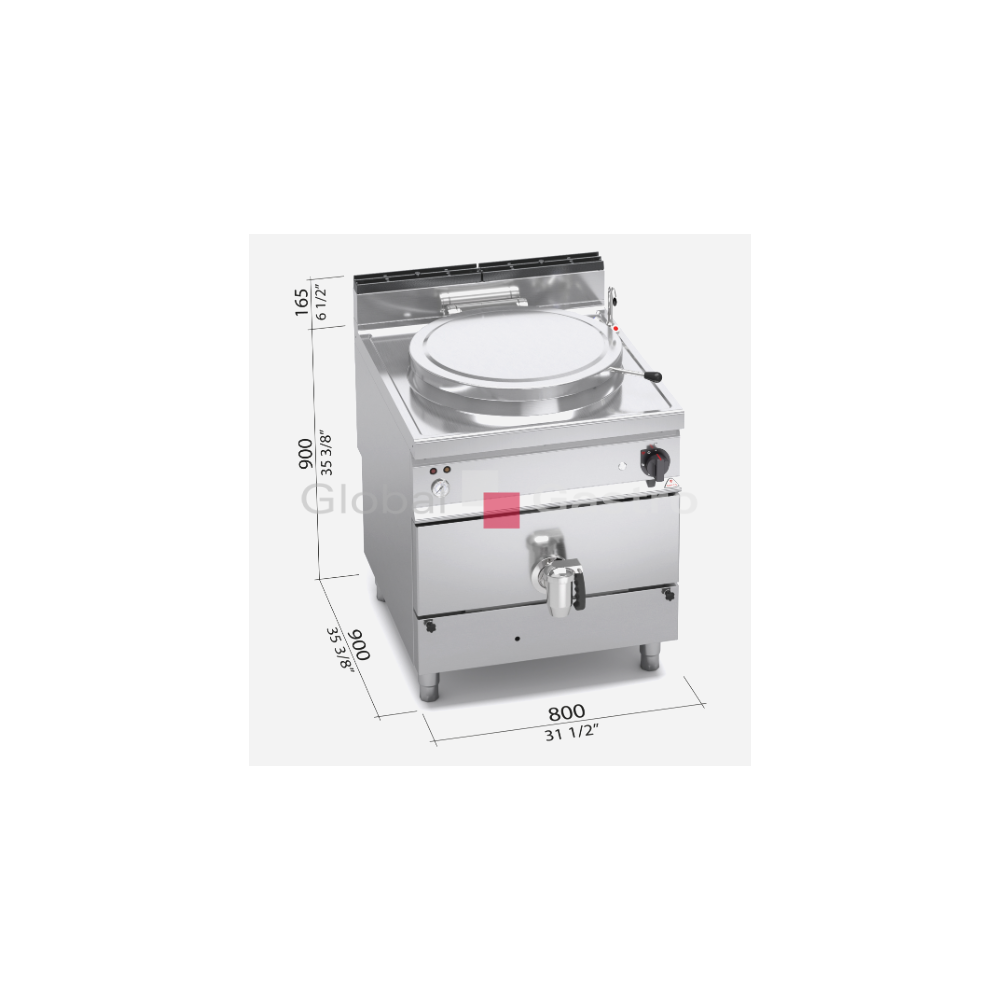Nepřímý ohřev s nízkotlakou párou (0,5 bar) generovanou v meziplášti vybaveném bezpečnostním termostatem. Topné těleso je umístěno v ochraném pouzdře z nerez oceli. Mechanický ukazatel tlaku umístěný ve vnějším opláštění. Ovládání výkonu a regulace teploty pomocí termostatu.