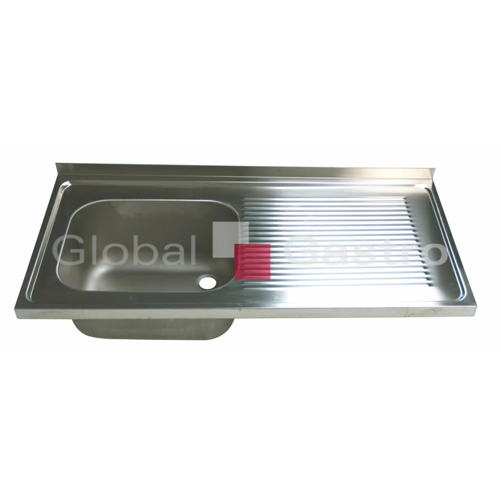 Nerezová dřezová deska s prolisem a vevařenou lisovanou vanou. Provedení se zadním jednoduchým lemem 40mm.