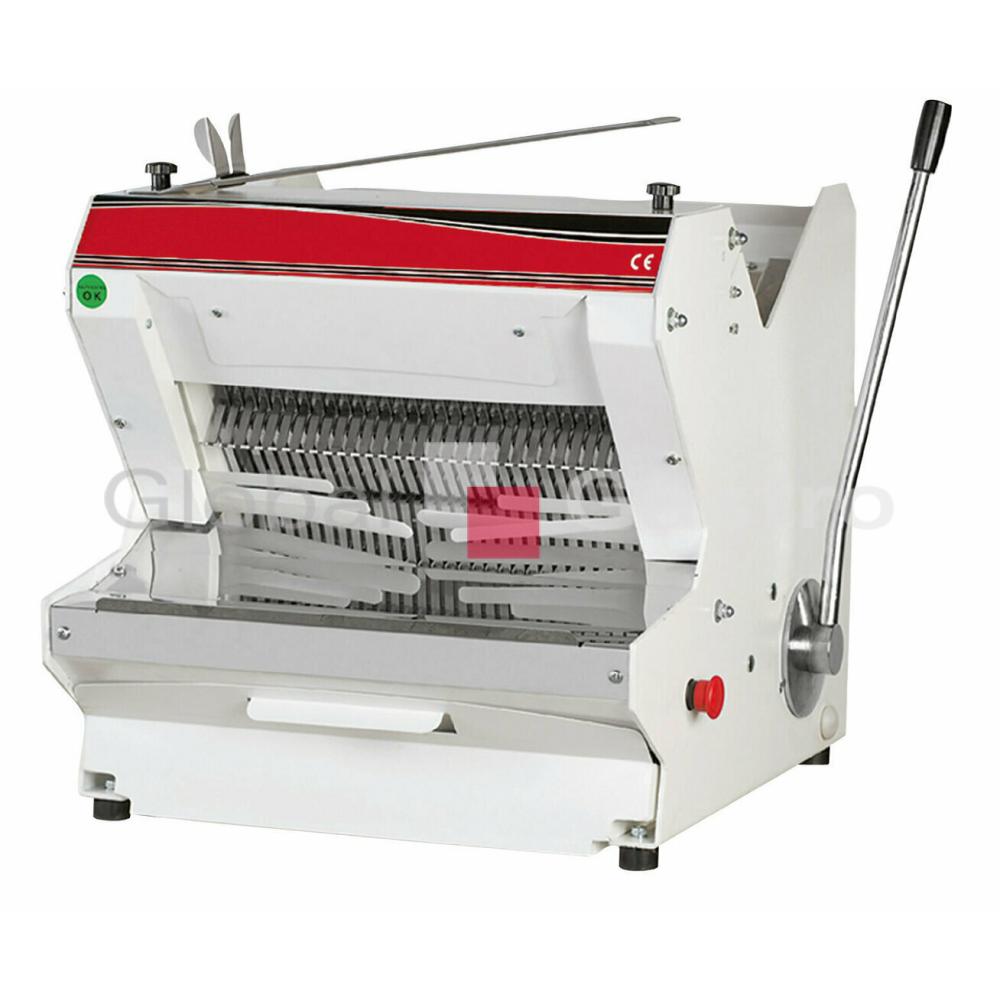 Vyprázdnění řezné komory je snadné a bezpečné. Součástí kráječe je také STOP tlačítko, v případě nutnosti zastaví chod krájení. Stroj je vybaven bezpečnostním krytem a pojistkou. Pohon nožů je zajišťován napájením o 230 V s příkonem 0,37 kW. Kráječ chleba je vyroben z lakovaného kovu, dotykové plochy jsou z nerezové oceli. Zařízení je svojí konstrukcí určeno pro lehčí gastronomické provozy a domácnosti. Nenáročné na potřebný prostor.