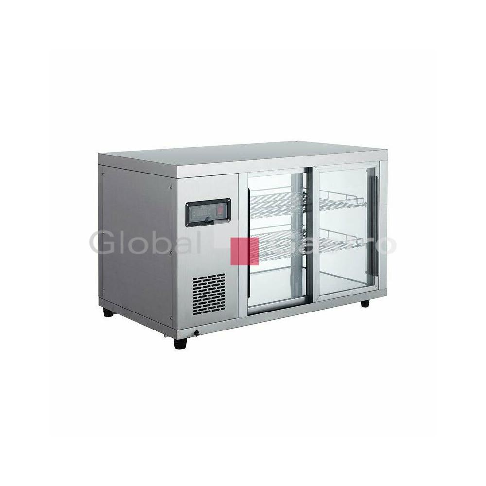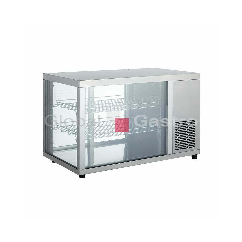 Chladicí pultová panoramatická vitrína RT-128L s ventilovaným chlazením, určena k prezentaci a prodeji potravin a nápojů. Vitrína je v elegantním nerezovém provedení a prosklená ze tří stran, má izolovaná skla. Ze strany obsluhy vybavena snadno posuvnými obslužnými dvířky s trojitým sklem a digitálním ovládáním a zobrazením teploty. Prezentaci uložených potravin umocňuje intenzivní 4× LED osvětlení umístěné v rozích vitríny (neohřívá vnitřní prostor a výrazně napomáhá prezentaci a prodeji ve všech patrech). Vitrína s vestavěným agregátem, ventilovaným chlazením s automatickým odtáváním, ovládána digitálním regulátorem se zobrazením teploty. Dvě chromové stavitelné police. Nastavitelné nožičky.