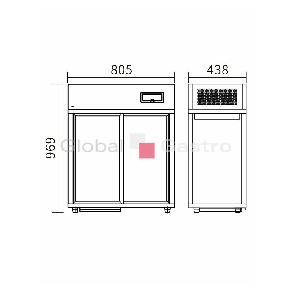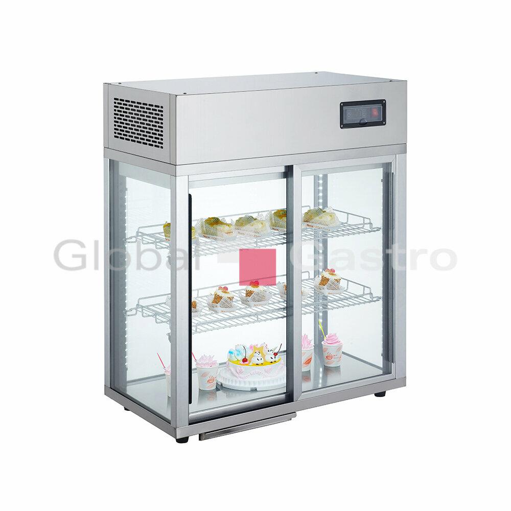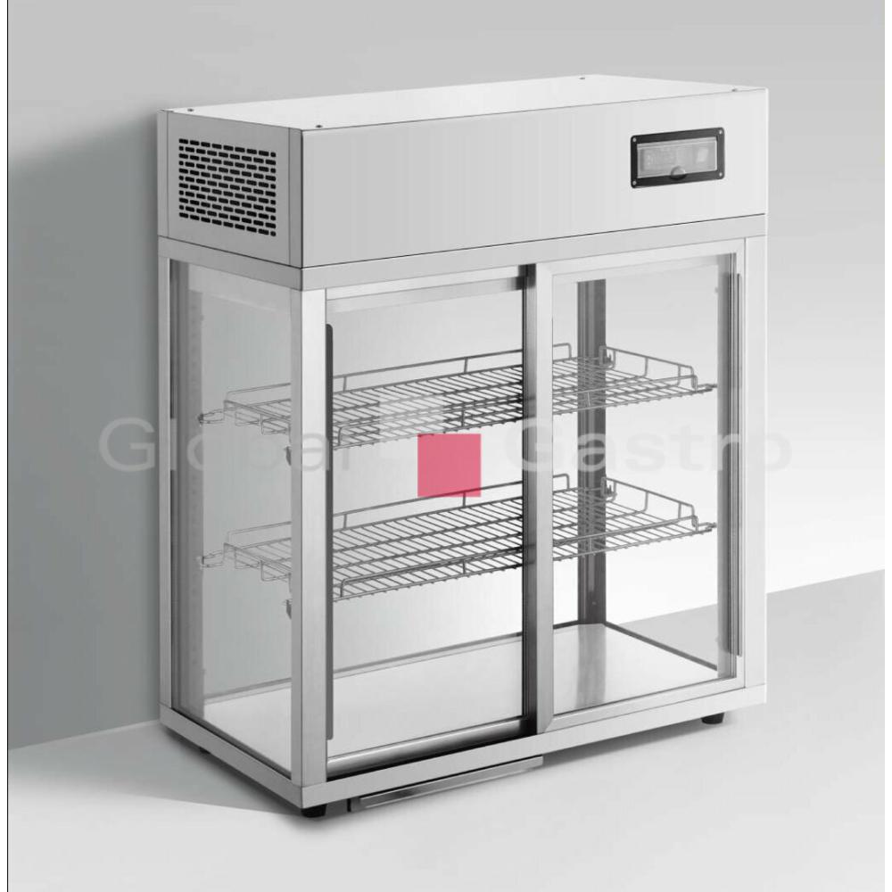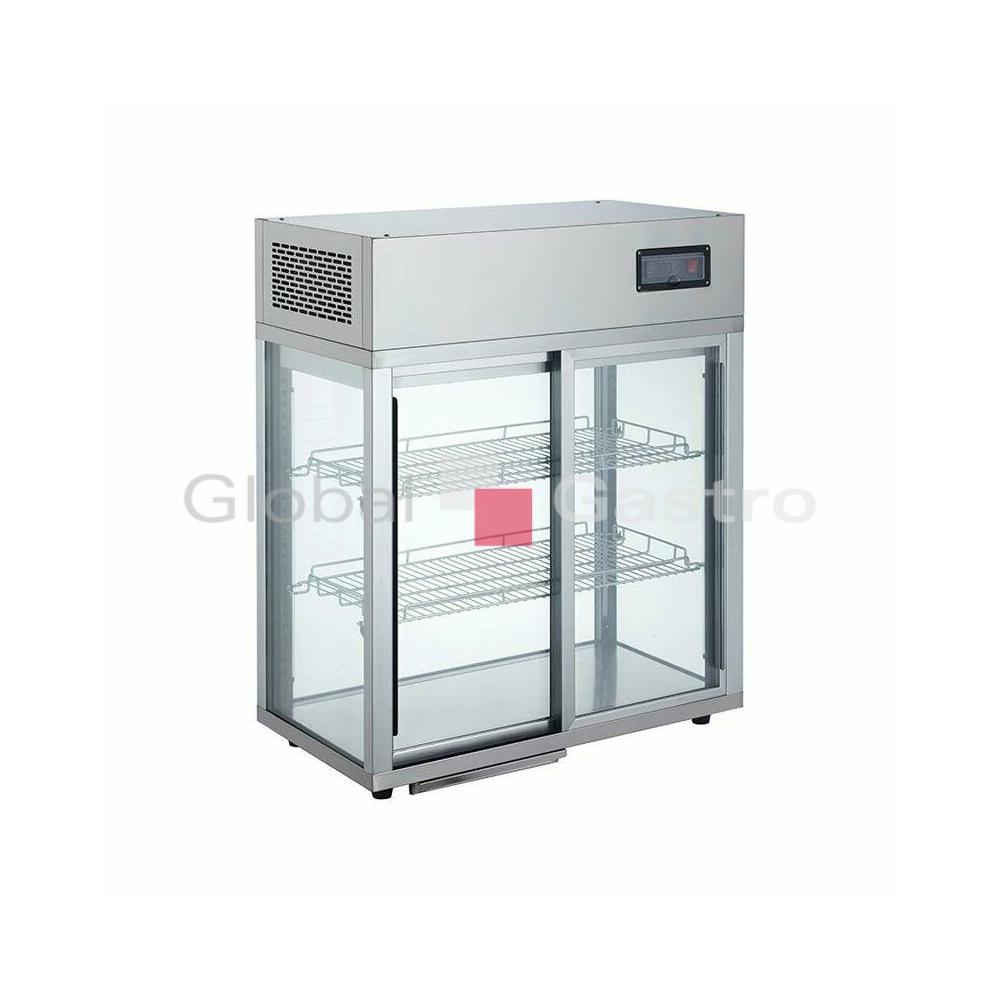 Chladicí pultová panoramatická vitrína RT-177L s ventilovaným chlazením (obslužná/samoobslužná), určena k prezentaci a prodeji potravin a nápojů. Vitrína je v elegantním nerezovém provedení, prosklená ze třech stran (izolovaná skla), agregát umístěn napravo (ze strany obsluhy), kde jsou umístěna posuvná dvířka (s trojitým sklem). Intenzivní rohové LED osvětlení (4x) neohřívá vnitřní prostor a výrazně napomáhá prezentaci a prodeji ve všech patrech. Vitrína je ovládána digitálním regulátorem se zobrazením teploty. Ventilovaný chladící systém s automatickým odtáváním a uložný prostor vybaven 2 chromovými a výškově polohovatelnými policemi. Nastavitelné nožičky.