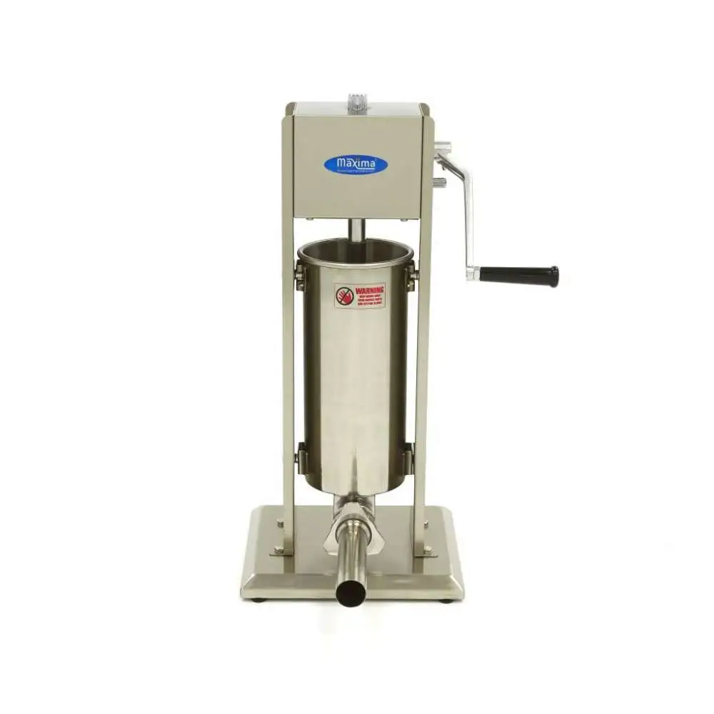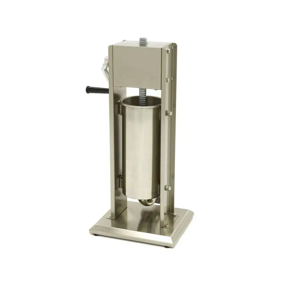 Tento vertikální plnič klobás má objem 5 litrů, který umožňuje přípravu lahodných klobás. Tento výrobník klobás má dvě rychlosti a dodává se se čtyřmi plnicími trubkami. Má nerezový kryt, základní desku, hřídel a lisovací desku pro snadné čištění. Ideální pro řeznictví nebo restaurace.