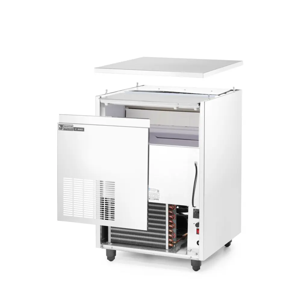 Spotřebič používá metodu stříkání k dokonalému vytvarování kostek pomocí šestihranného otvoru, který má větší chladicí povrch a zajišťuje delší dobu chlazení – a zároveň minimalizuje ředění nápojů.