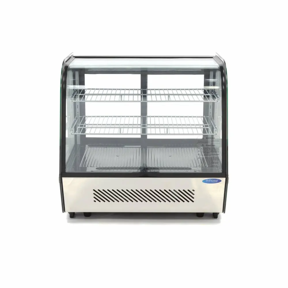 Tato zakřivená černá chladnička s vitrínou má objem 120 litrů a je vybavena posuvnými dveřmi v zadní části, které usnadňují doplňování a vyjímání produktů. Má dvě nastavitelné police, vnitřní LED osvětlení a digitální displej. Perfektně se hodí k prezentaci pečiva, sendvičů a dalšího občerstvení v provozovnách potápěčského stravování.