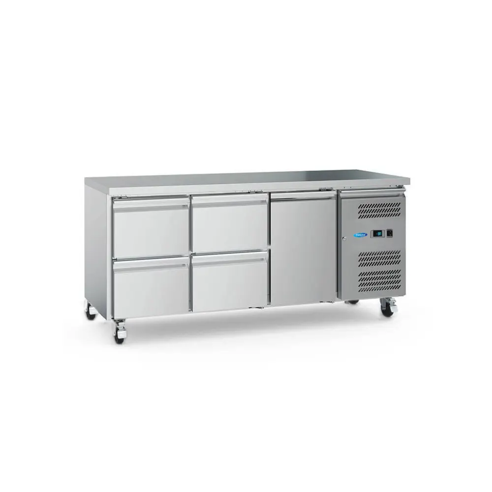 Tato pultová chladnička je multifunkční v každé kuchyni. Udrží vaše potraviny v chladu a pracovní plochu můžete využít k přípravě pokrmů nebo si připravit jídlo tak, aby bylo připraveno k servírování. Nerezová pracovní deska se snadno čistí a vnitřní prostor pultové chladničky si můžete přizpůsobit svým potřebám.