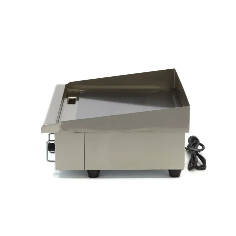 Tento elektrický rošt má varnou plochu 55 cm a je vyroben z oceli s nerezovou slitinou. Je vybavena ochranou proti stříkající vodě pro bezpečnou práci a odkapávací miskou pro zachycení tuku. Na této hladké pánvi můžete vytvářet ty nejchutnější pokrmy v profesionální kuchyni.