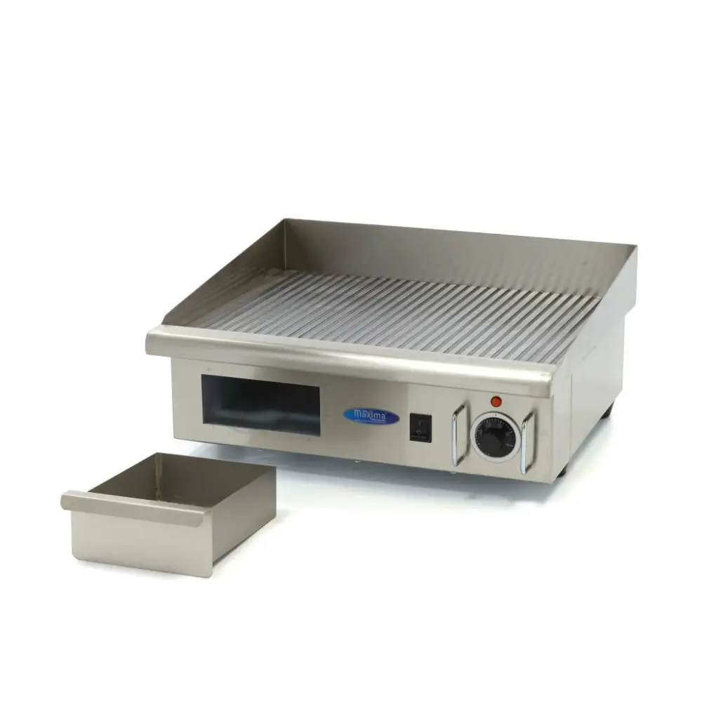 Tento elektrický rošt má drážkovanou grilovací plochu o délce 55 cm a je vyroben z nerezové oceli. Má odkapávací misku pro zachytávání tuku a ochranné kryty proti stříkající vodě pro bezpečnou práci. S tímto roštem můžete grilovat to nejchutnější maso, ryby nebo zeleninu a je ideální pro každodenní intenzivní používání v každé profesionální kuchyni.