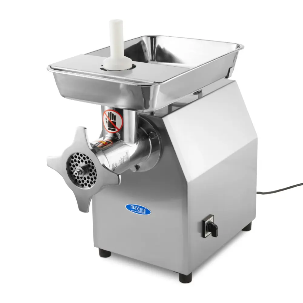 Tento robustní a profesionální mlýnek na maso z nerezové oceli dokáže umlít až 320 kg masa za hodinu. Nože a desky jsou vyrobeny z kalené oceli a lze je mlít dopředu i dozadu. Mlecí část lze pro důkladné čištění vyjmout. Ideální pro řeznictví, restaurace a kuchyně veřejného stravování.