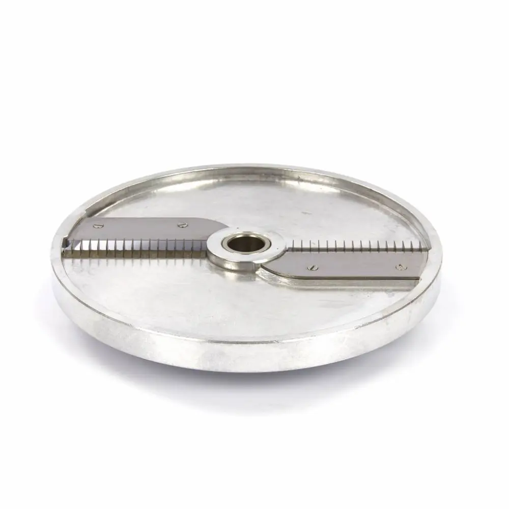 Tento hliníkový kráječ julienne 4 mm je vhodný pro kráječ zeleniny VC450. Tento kráječ umožňuje krájet zeleninu nebo brambory na dlouhé tenké proužky. Kráječ lze vložit do kráječe zeleniny. Jakmile skončíte, lze krájecí kotouč vyjmout a vyčistit teplou mýdlovou vodou. Ujistěte se, že jste krájecí kotouč důkladně osušili a pro správnou údržbu použijte trochu rostlinného oleje na krájecí kotouče.