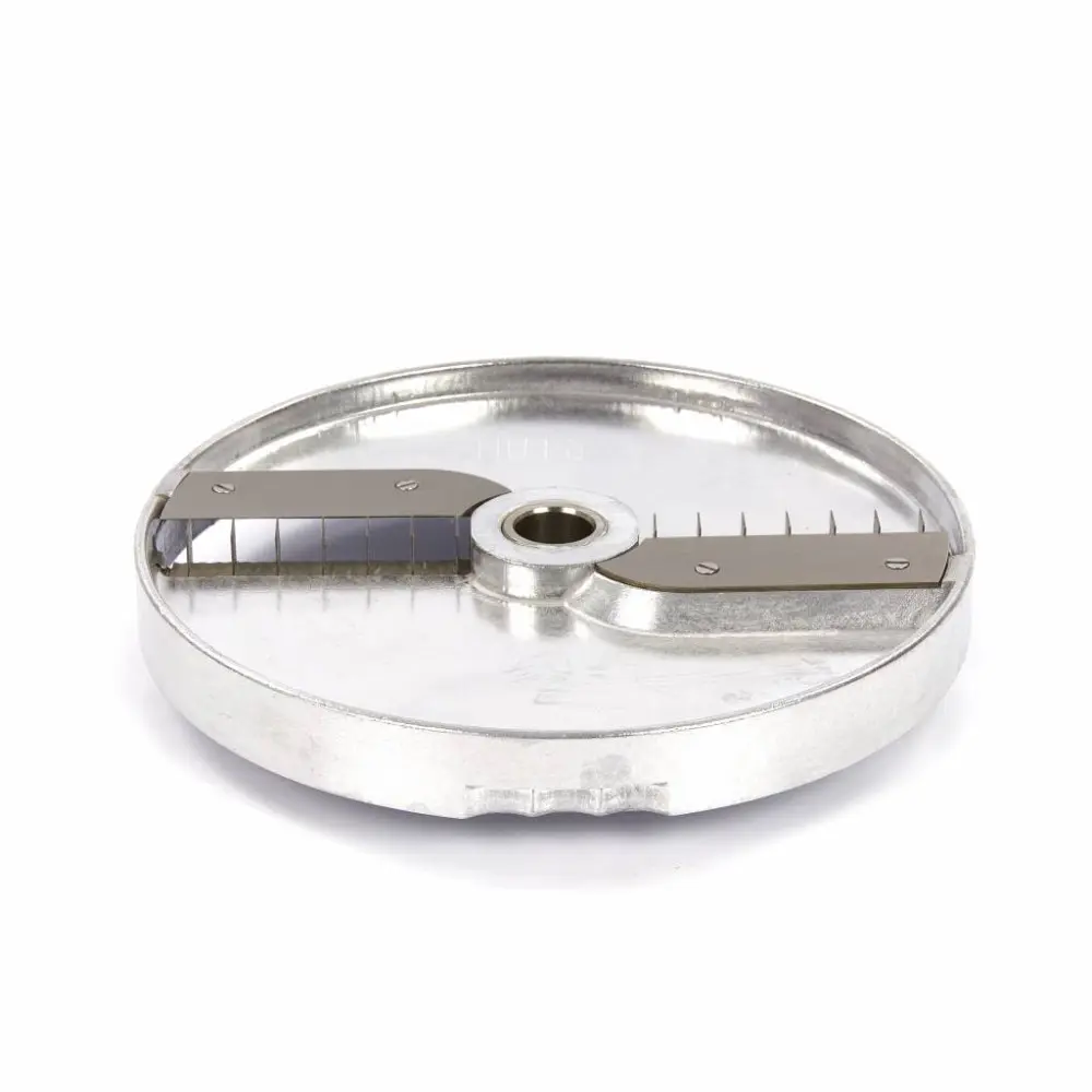Tento hliníkový kráječ julienne 10 mm je vhodný pro kráječ zeleniny VC450. Tento kráječ umožňuje krájet zeleninu nebo brambory na dlouhé tenké proužky. Kráječ lze vložit do kráječe zeleniny. Jakmile skončíte, lze krájecí kotouč vyjmout a vyčistit teplou mýdlovou vodou. Ujistěte se, že jste krájecí kotouč důkladně osušili a pro správnou údržbu použijte trochu rostlinného oleje na krájecí kotouče.