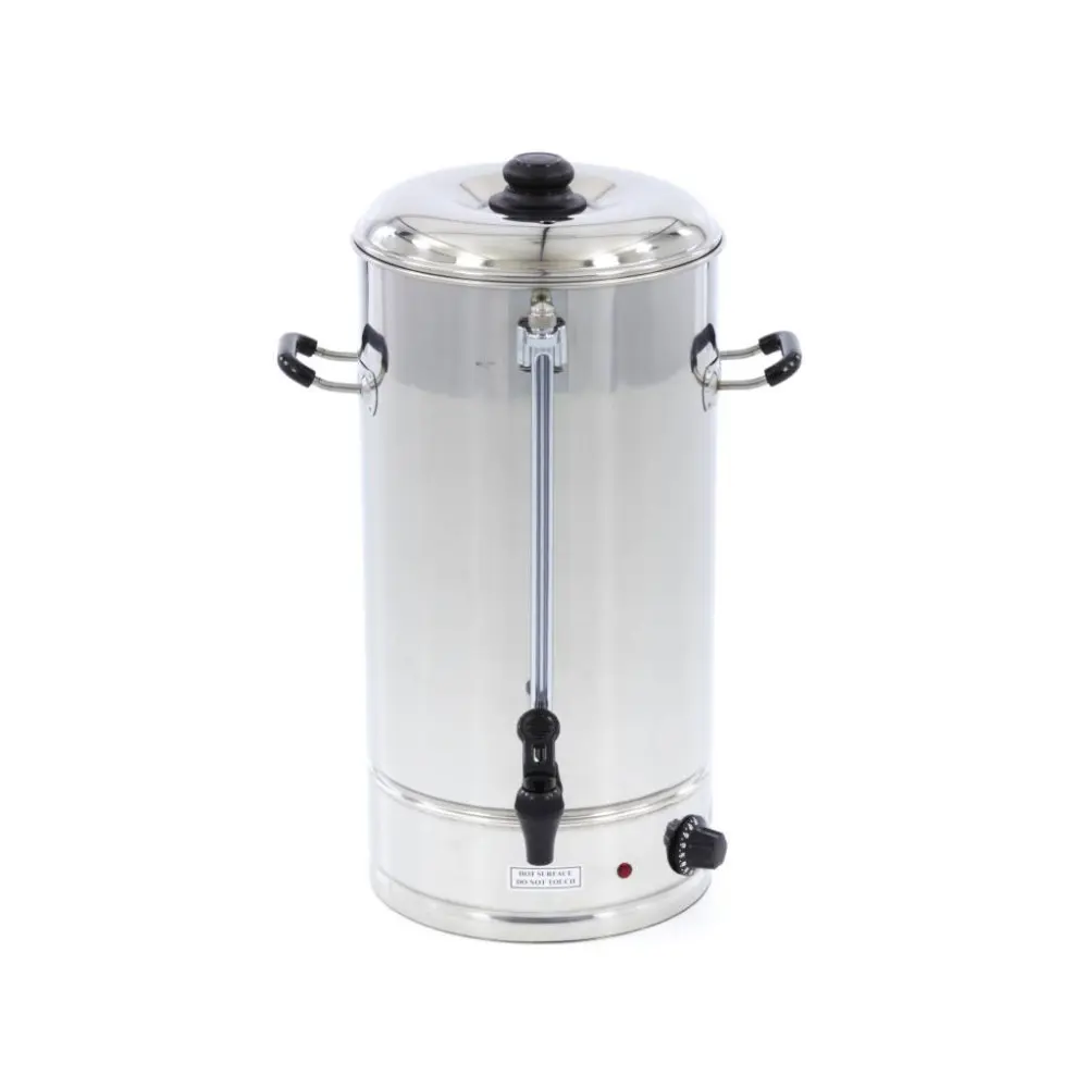 Tento výdejník horké vody má kapacitu 20 l a je vhodný pro vaření vody pro velké skupiny lidí, například na akci nebo pro použití na veletrhu či ve stánku. Teplotu lze nastavit a přístroj obsahuje přehledný ukazatel hladiny, takže můžete sledovat, kolik vody vám ještě zbývá, než ji budete muset doplnit.