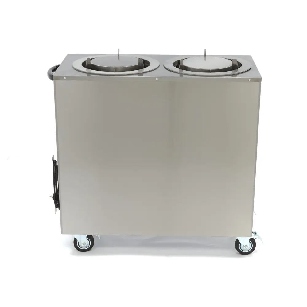 Teplotu v tomto ohřívači talířů lze nastavit v rozmezí 30 až 80⁰C, takže mají vždy správnou teplotu pro pokrmy, které servírujete. Obsahuje také dvě oddělené komory, každou s vlastním systémem ohřevu, takže můžete pro talíře nastavit různé teploty. Jednotlivé části byly vyrobeny z vysoce kvalitních materiálů, takže si můžete být jisti, že tento ohřívač talířů vydrží mnoho let. Tento ohřívač talířů je dodáván na čtyřech kolečkách včetně brzd, takže jej lze podle potřeby přemisťovat. Jeho součástí je také výstražná kontrolka, která signalizuje, kdy má spotřebič správnou teplotu.