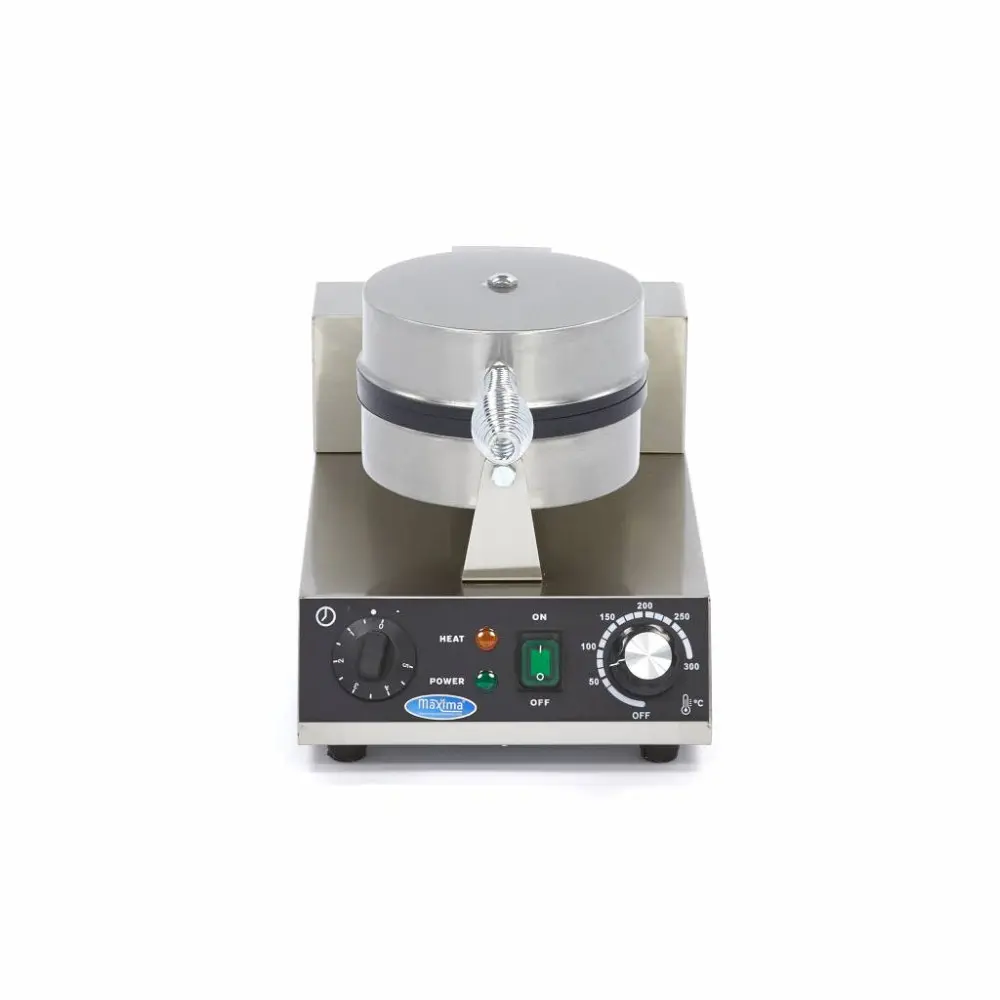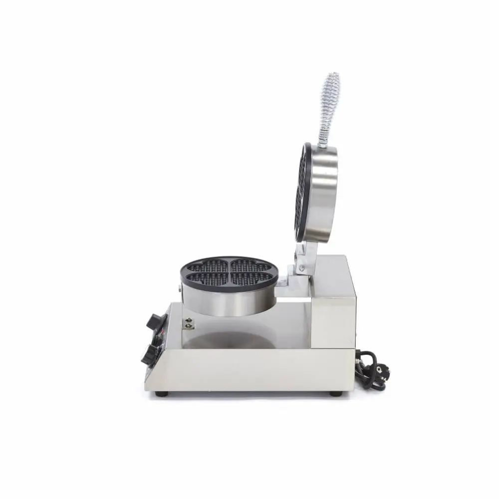S tímto profesionálním vaflovačem můžete připravit čtyři vaflovače najednou. Má kryt z nerezové oceli a nepřilnavou hliníkovou pečicí desku. Analogový ovládací panel má robustní knoflíky pro nastavení teploty nebo časovače. Ideální pro použití na veletrhu, trhu, v restauraci nebo kavárně.