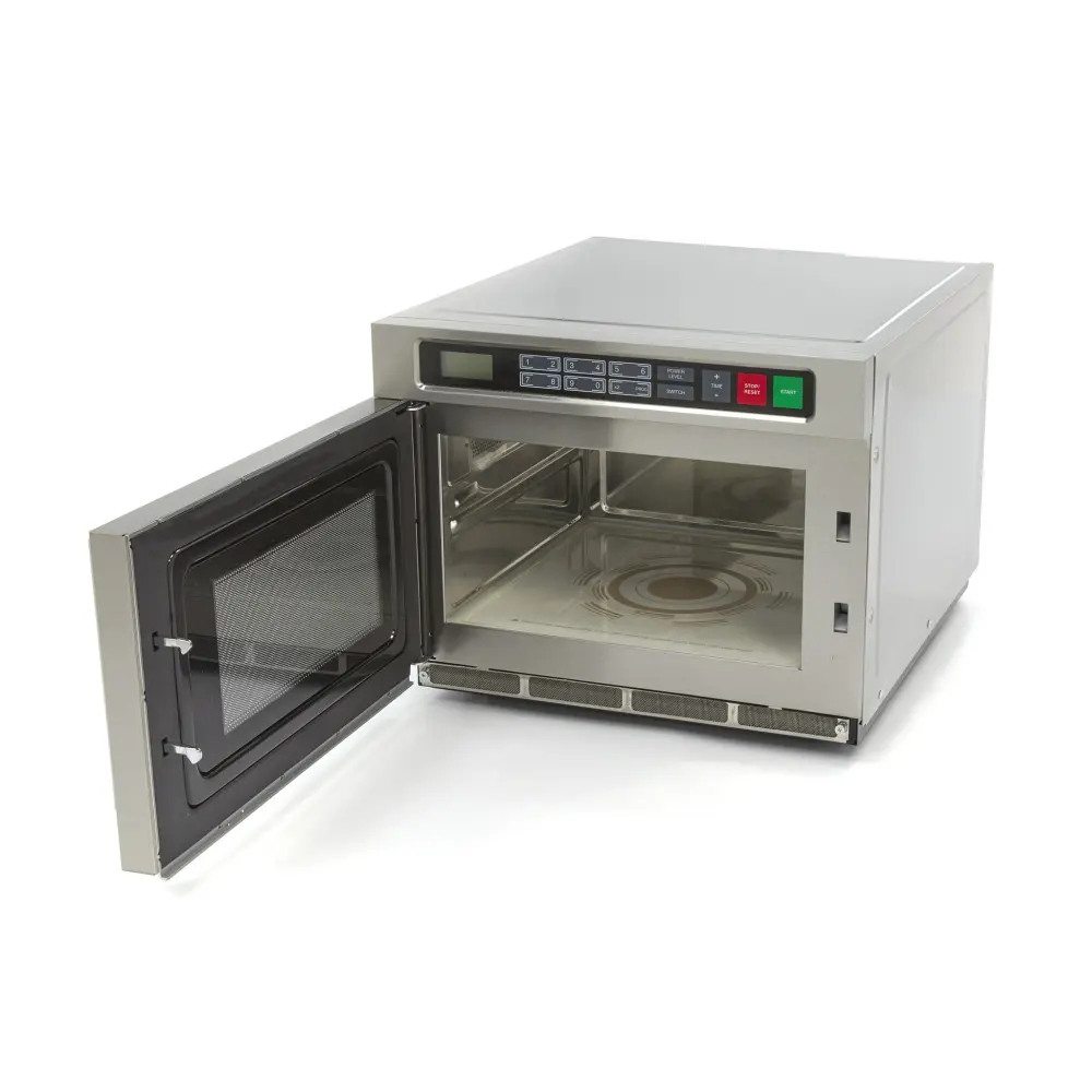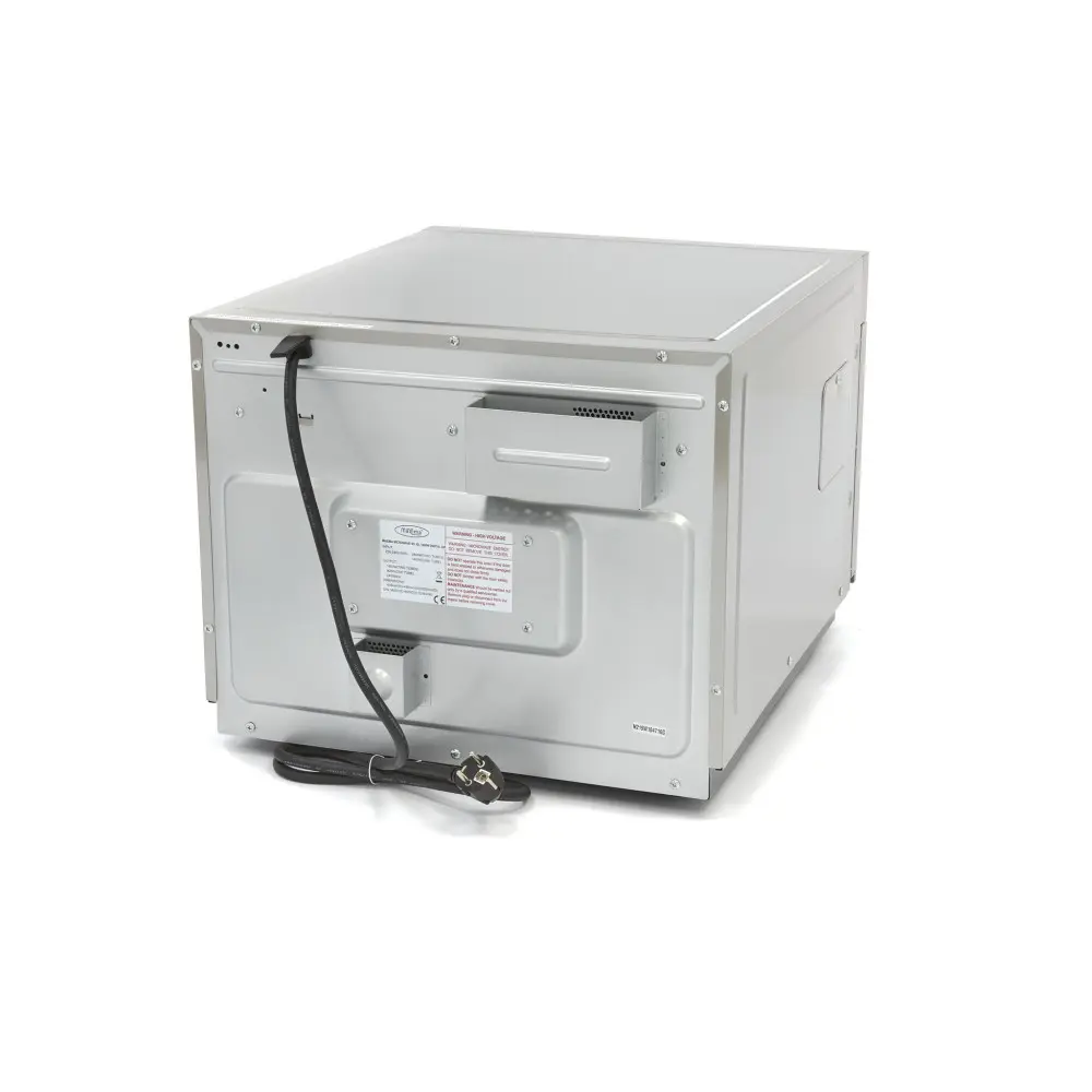 Tato mikrovlnná trouba má přehledný ovládací panel s digitálním časovačem. Velikost talířů, které jsou vhodné pro tuto mikrovlnnou troubu, jsou talíře o průměru 36 cm nebo méně. Kromě talířů je mikrovlnná trouba vhodná také pro (plastové) GN mísy o velikosti 1/2 GN a menší. Dvířka jsou průhledná a bez zámku, takže se snadno otevírají a zavírají. Vnitřní komora je také vybavena osvětlením, abyste mohli sledovat průběh přípravy nádobí. Ohřívací tělesa jsou umístěna v horní a spodní části mikrovlnné trouby. Tato mikrovlnná trouba je vhodná pro velkokuchyňské a gastronomické použití.