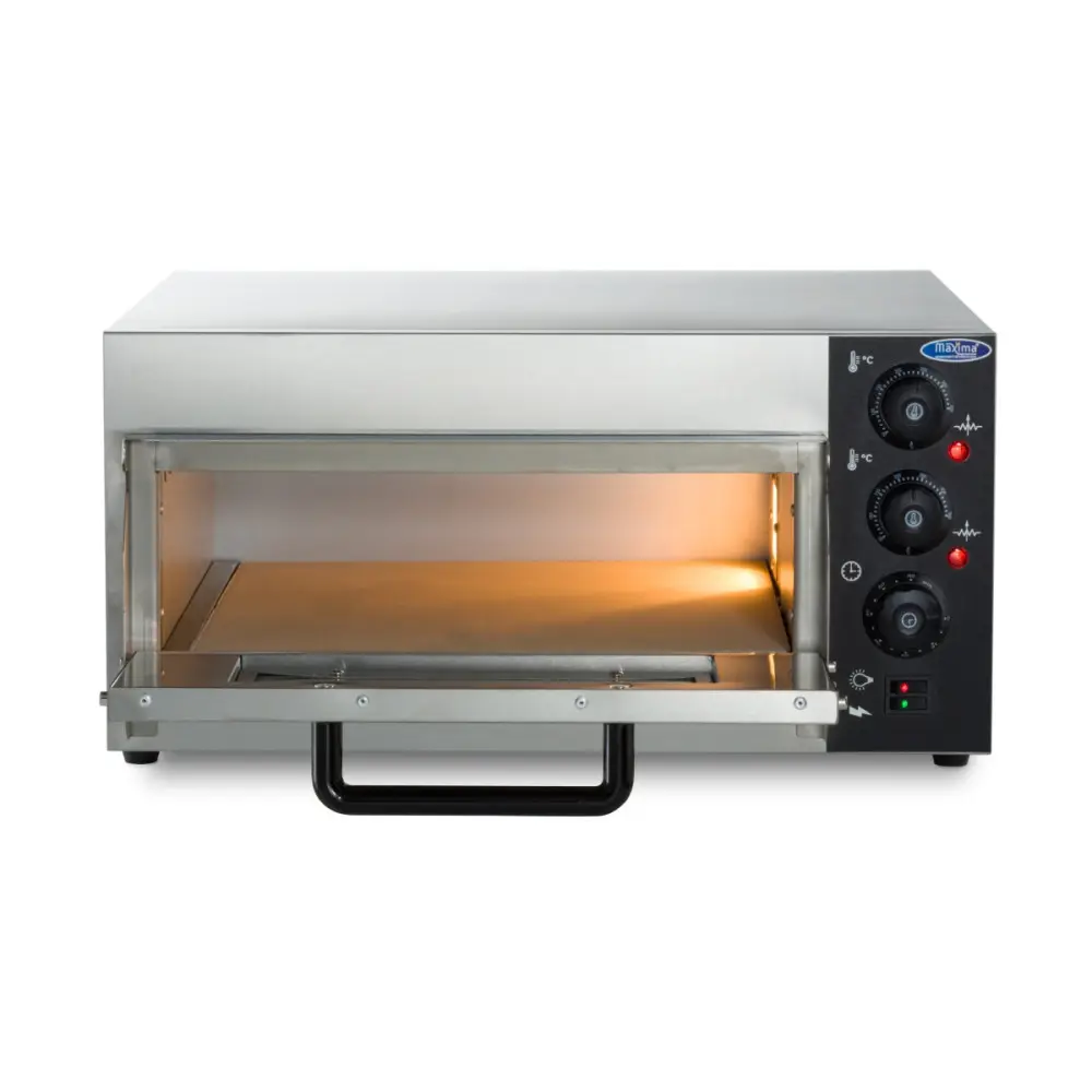 Tato robustní a kompaktní pec na pizzu má kamennou desku, na kterou se vejde jedna 40cm pizza nebo čtyři 20cm pizzy. Pomocí analogového ovládání můžete nastavit horní a spodní teplotu a časovač. Má vnitřní osvětlení, takže můžete sledovat proces pečení pizzy.