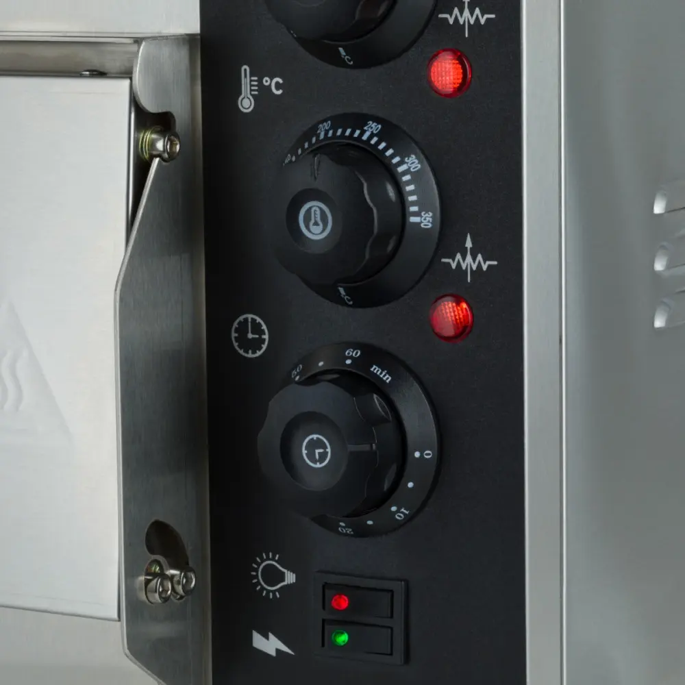 Pečte lehkou a křupavou pizzu při teplotách od 0 do 350 °C. Teplota je nastavitelná v horní i spodní části trouby, takže získáte nejen lahodně roztavený sýr, ale také křupavý základ. Díky atermálnímu sklu si při otevírání dvířek pizzerie nespálíte ruce. Tato elektrická pec na pizzu je navíc vybavena analogovým ovládáním teploty a osvětlení. Efektivní rozvod tepla zajišťuje rovnoměrné propečení všech pizz.