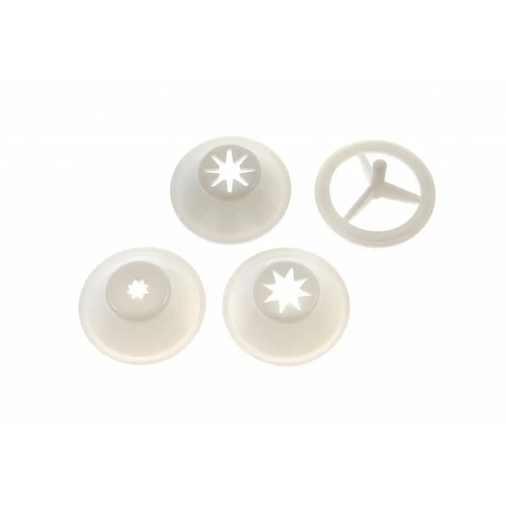 Chcete-li vyrobit churros, vložte těsto do zásobníku. Pomocí různých nástavců můžete určit tvar a šířku churros. Otáčením rukojeti stroje na výrobu churros se sníží přítlačný kotouč v zásobníku, díky čemuž churros vycházejí ze stroje v dlouhých šňůrách. Než budete moci churros vložit do oleje na smažení, nakrájejte je na požadovanou délku. Přítlačný kotouč tohoto stroje na churros je opatřen otvorem pro odvzdušnění a je uzavřen těsněním. K dispozici jsou dvě rychlosti, abyste mohli dokonale vytvořit své churros.