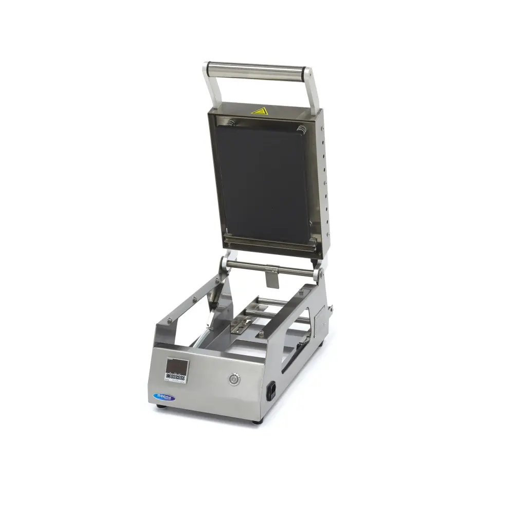 Tato luxusní svářečka zásobníků je vhodná pro rychlé a efektivní uzavírání a balení různých potravin, jako je maso, ryby, ovoce a zelenina. Pomocí tohoto horního zatavovače můžete zatavit 6-8 táců za minutu. Díky různým dostupným formám jej lze použít i k utěsnění nejrůznějších tvarů a velikostí podnosů.