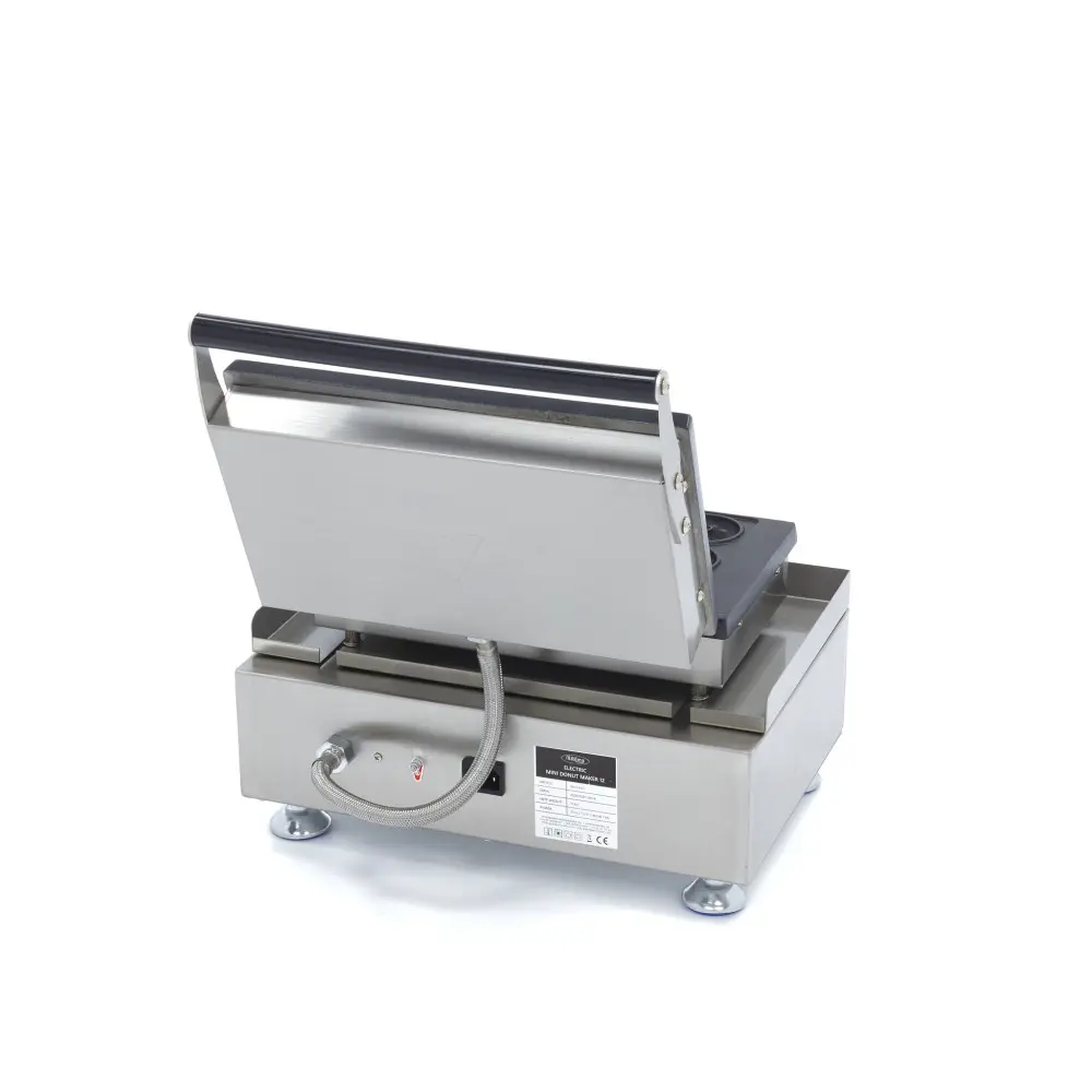 S tímto výrobníkem mini koblížků připravíte dvanáct mini koblížků najednou. Donutovač je ideální do cukráren, pekáren nebo jídelen. Je vyroben z nerezové oceli s hliníkovou pečicí deskou s nepřilnavým povrchem. Pomocí otočných knoflíků snadno nastavíte požadovanou teplotu a časovač.