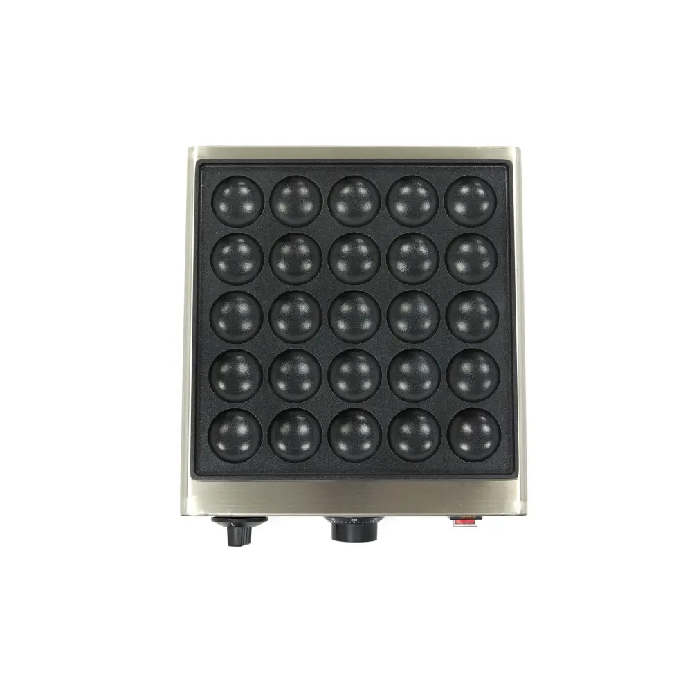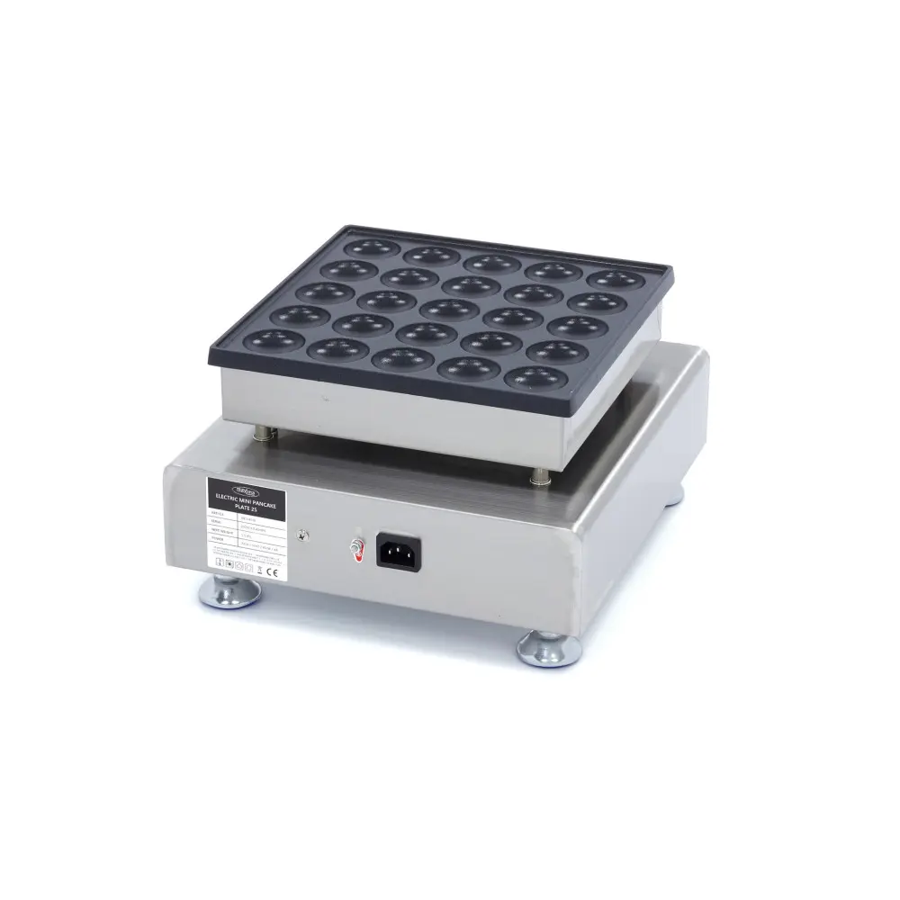 S tímto elektrickým palačinkovačem připravíte 25 chutných mini palačinek během chvilky. Kryt je vyroben z nerezové oceli a hliníková pečicí deska má nepřilnavý povrch. Tento mini palačinkovač je ideální pro každodenní použití ni stáncích s koláči, na trzích a veletrzích, ale také v restauracích a jídelnách.