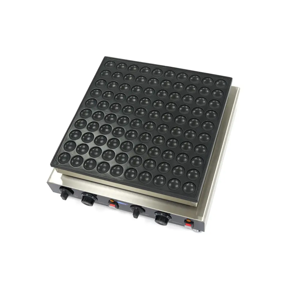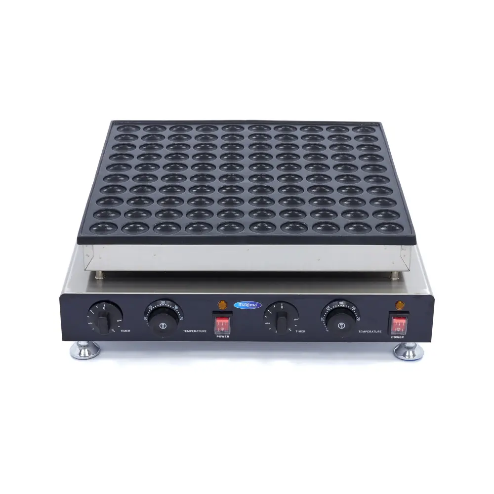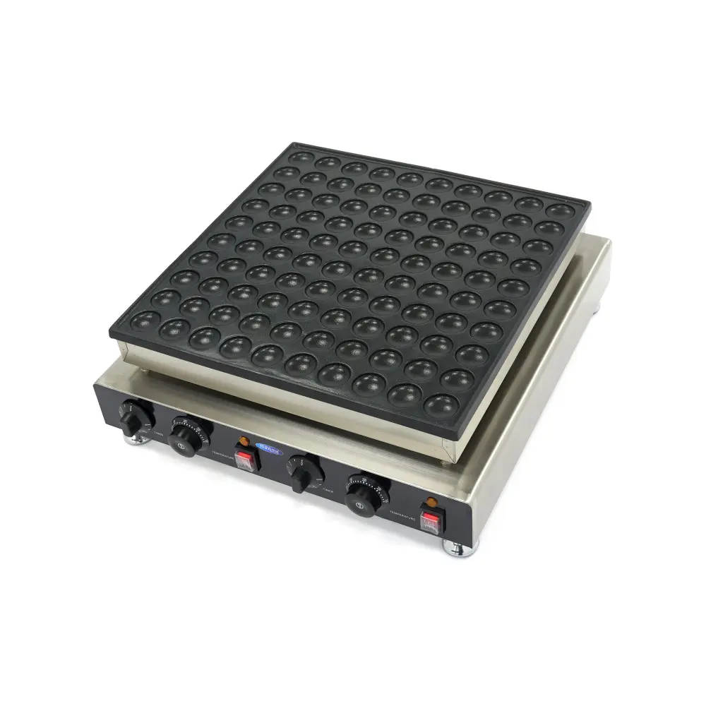 S tímto elektrickým palačinkovačem připravíte rychle 100 chutných mini palačinek o průměru 4 cm. Na analogovém ovládacím panelu můžete nastavit teplotu a časovač pro obě topná tělesa zvlášť. Pečicí deska je vyrobena z hliníku a má nepřilnavý povrch.