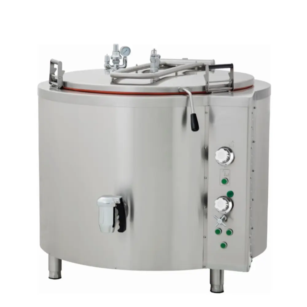 Tento varný kotel funguje na elektrický proud (400 V). Dvojitá stěna na vnitřní straně může být naplněna vodou a zdroj tepla je umístěn přímo pod kotlem. Díky tomu vytváří velmi účinný systém nepřímého ohřevu. Bezpečnostní termostat chrání před příliš nízkou hladinou vody, aby se pokrmy rychle nepřipálily. Varný kotel je tak ideální pro tekuté pokrmy nebo potraviny, které vaříte ve vodě, jako je rýže, brambory, maso a zelenina. Díky dodatečnému izolačnímu materiálu jsou také tepelné ztráty a spotřeba energie minimální.