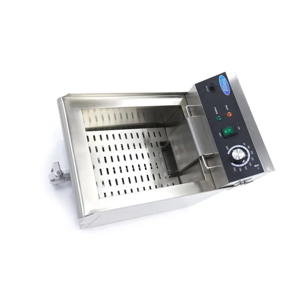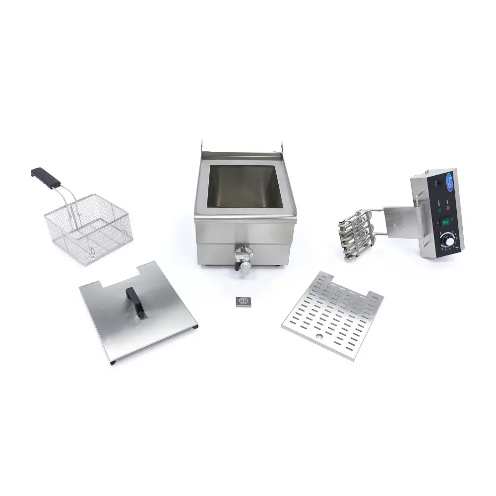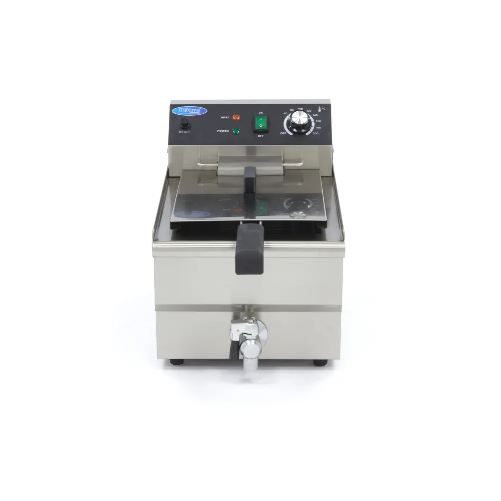 Tato univerzální fritéza je ideální pro použití v profesionální kuchyni. V této fritéze o objemu 13 litrů můžete snadno usmažit až 1,1 kg hranolků. Kromě hranolek můžete smažit i mnoho dalších druhů potravin, jako je zelenina, občerstvení a další předkrmy. Fritéza je vybavena praktickým vypouštěcím kohoutem, takže fritovací olej lze snadno a bezpečně vyměnit. Na dně fritézy se nachází vyjímatelná mřížka, která zajišťuje, aby drobky neblokovaly vývod oleje. Při výměně oleje stačí pod kohoutek umístit nádobu a otevřít jej. Počkejte, až všechen olej odteče do pánve přes kohoutek, a poté jej zavřete.