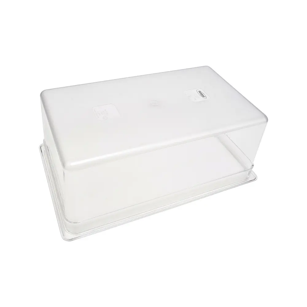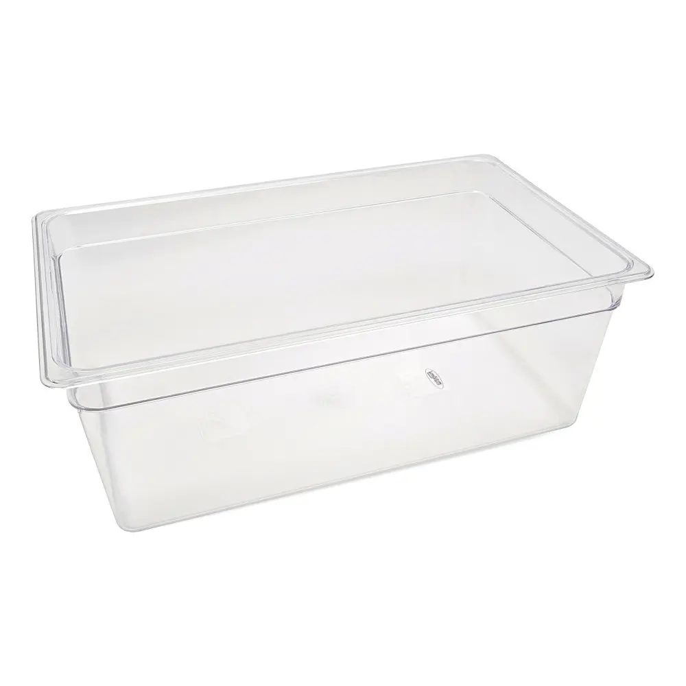 Tato průhledná polykarbonátová nádoba Gastronorm 1/1 je hluboká 15 cm a má objem 21 l....