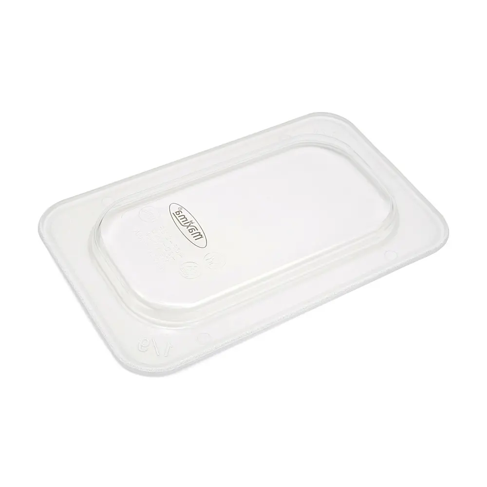 Toto průhledné víko Gastronorm 1/9 je vyrobeno z polykarbonátu a je stohovatelné a lze jej mýt v myčce nádobí. Je prakticky nerozbitné. Toto víko můžete použít k zakrytí polykarbonátových nádob GN od společnosti Maxima. Je kompatibilní s mnoha různými druhy gastronomických zařízení, jako jsou trouby, chladicí zařízení, bain maries a opékací misky.