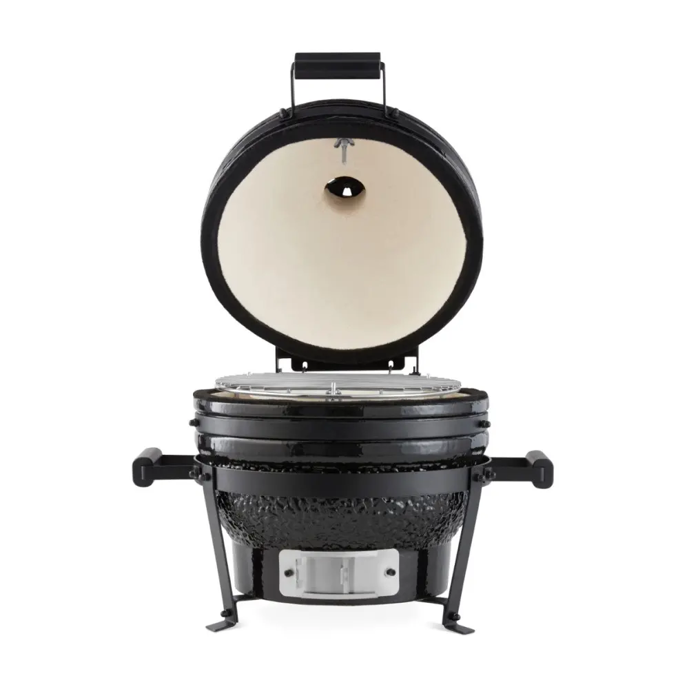 S průměrem 34,5 cm je tento gril Kamado BBQ kompaktní a přitom výkonný. Díky praktickému designu můžete používat všechny techniky přípravy pokrmů jako na tradičním grilu. Ať už chcete grilovat kuře, upéct lahodnou pizzu nebo si udělat čas na pomalé vaření křehkého kusu vepřového masa, vše je možné.