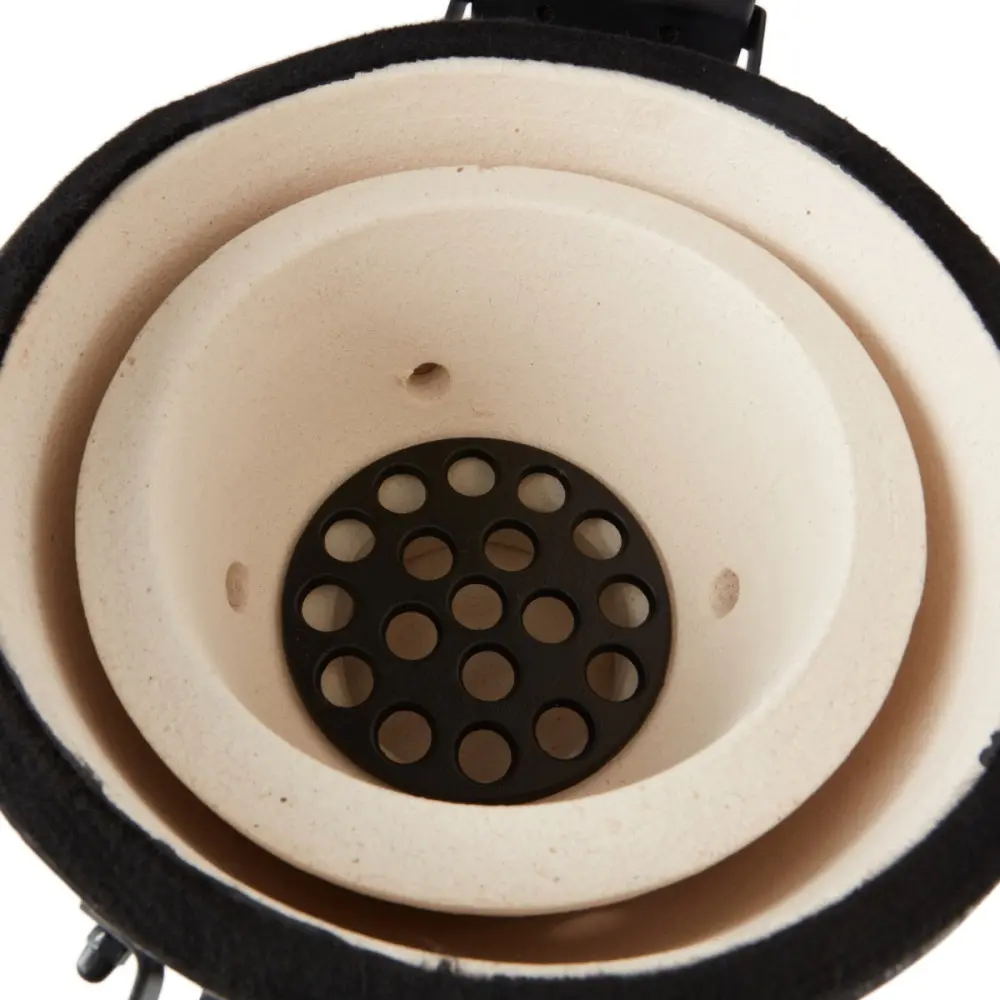 Tento kompaktní černý gril ve tvaru vejce o velikosti 16 palců je ideální pro grilování, pečení, vaření, vaření v páře a dokonce i pomalé vaření. Gril je vyroben z mullitu a je vybaven keramickými bočnicemi a miskou na oheň. Má ocelový podvozek s povrchovou úpravou, popruhy a panty a dva větrací otvory pro dokonalou cirkulaci vzduchu.