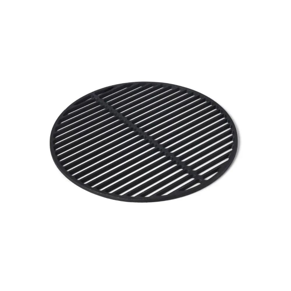 Tento rošt je vyroben z litiny a odolává vyšším teplotám než běžný rošt. Protože litina vyzařuje rovnoměrnější teplo, poskytuje dokonalý ohřevný povrch pro opékání masa. Litina také vydrží déle horká než ocelový rošt. A samozřejmě tento rošt zajišťuje známé grilovací pruhy na steacích.