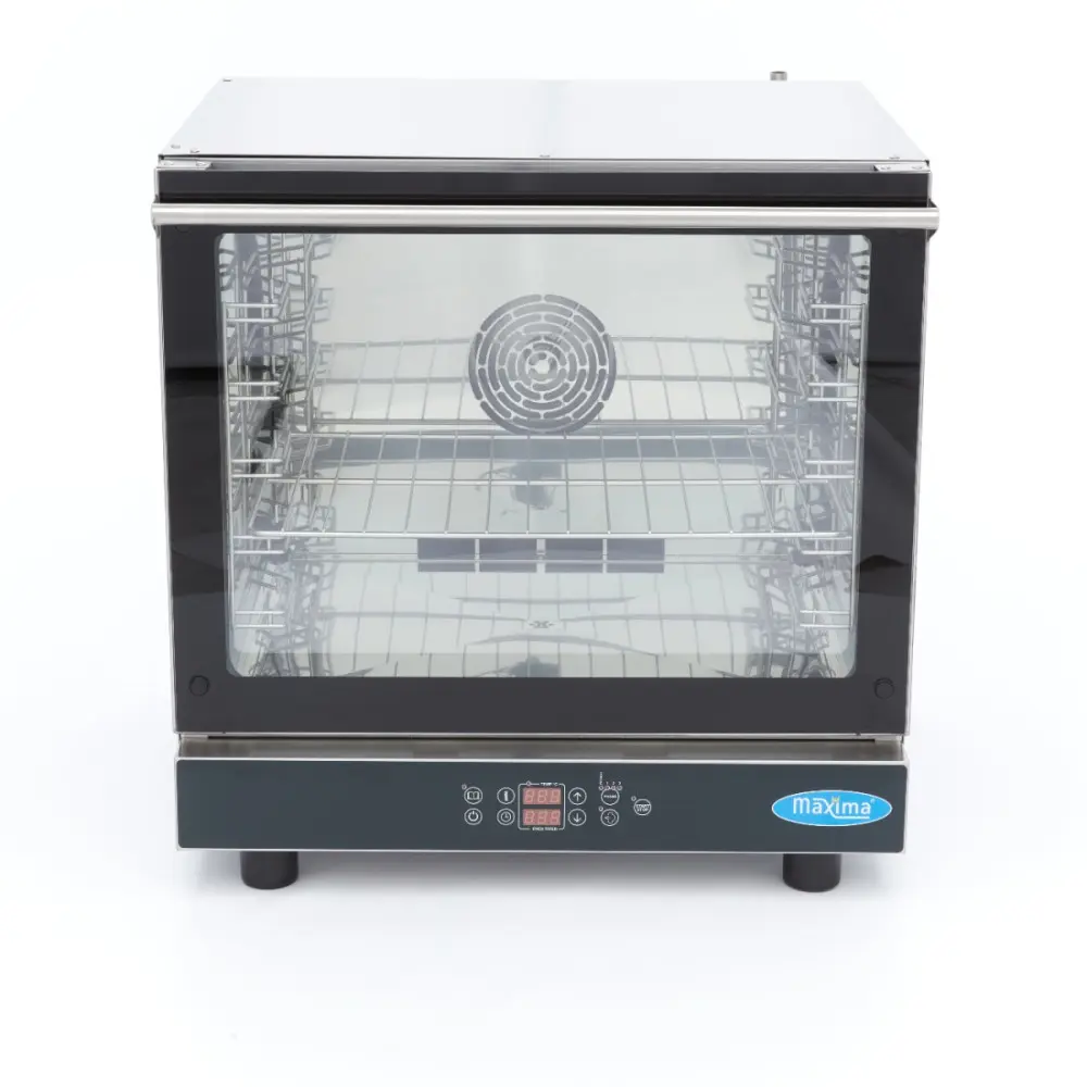 Tato kombinovaná parní trouba má výkonná topná tělesa z nerezové oceli, která zajišťují úplné a účinné rozložení tepla, takže maso a ryby se připravují rovnoměrně. Kromě toho je konvektomat vybaven ventilátorem s funkcí zpětného chodu a dvojitým atermickým zasklením. Dvířka se velmi snadno nastavují a těsnění dvířek je vyrobeno z potravinářského silikonu. Díky vnitřnímu osvětlení snadno zjistíte, jak daleko jste v procesu vaření. Tento spotřebič je vybaven přívodem vody s ventilem pro výrobu páry a také vývodem vody. Jedná se o zcela přizpůsobitelný přístroj s jednoduchým digitálním displejem a dotykovými tlačítky. K dispozici je několik přednastavených programů se třemi nastavitelnými fázemi, včetně úrovně páry, teploty a času. Přednastavené programy můžete nastavit pomocí tlačítka fáze. Přednastavený program je také možné upravit a uložit do paměti konvektomatu.