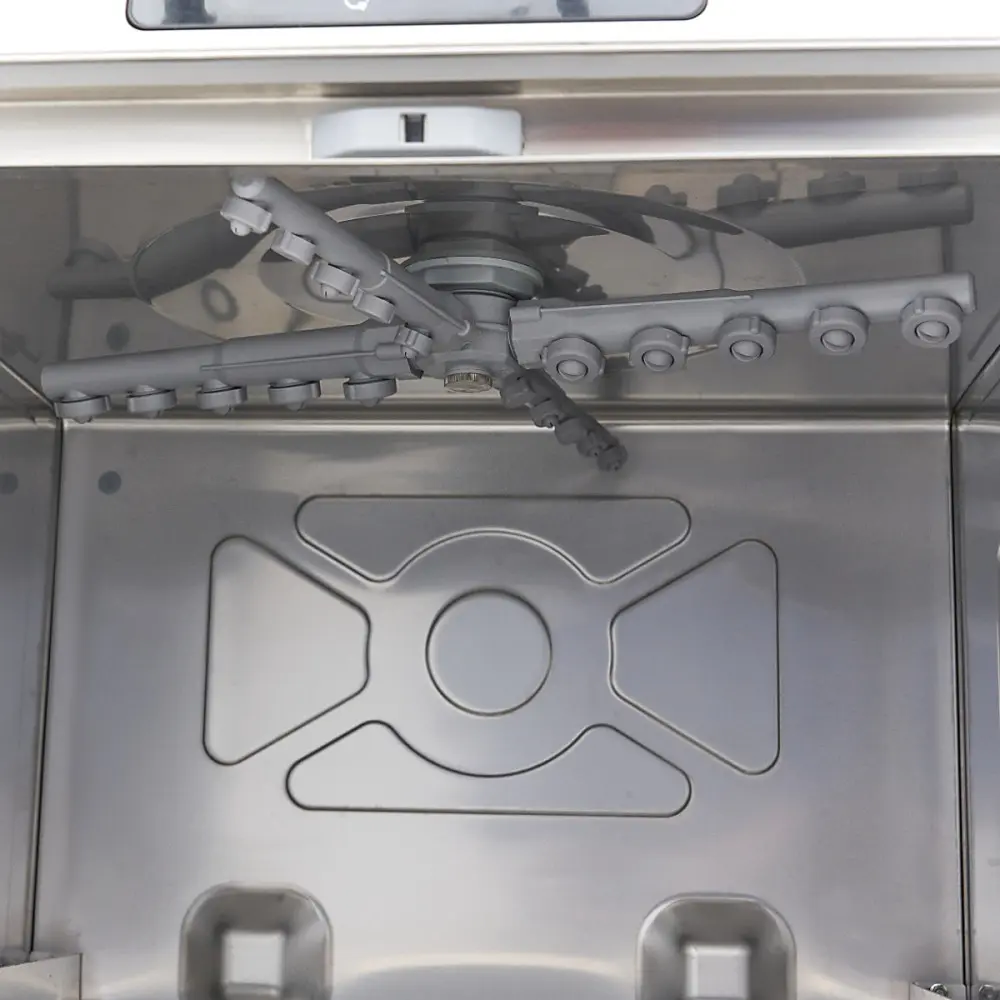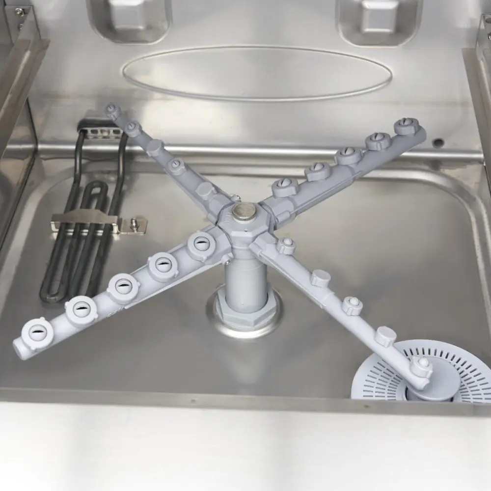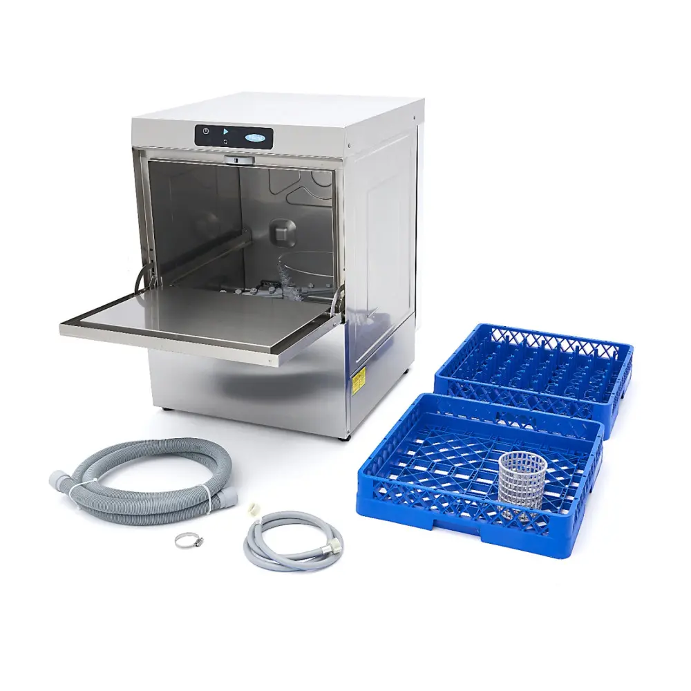 V profesionálních kuchyních je rychlá a účinná myčka nádobí nepostradatelná pro každodenní mytí nádobí. Naše myčka nabízí tři kompletní mycí programy v délce 55, 105 a 195 sekund, spolu s funkcí pauzy a přehledným digitálním displejem. Po skončení mycího procesu je nádobí opláchnuto horkou vodou pro rychlé osušení, čímž je zajištěna připravenost k dalšímu použití. Tato myčka nádobí pracuje s hlučností nižší než 70 dB, takže je velmi tichá.