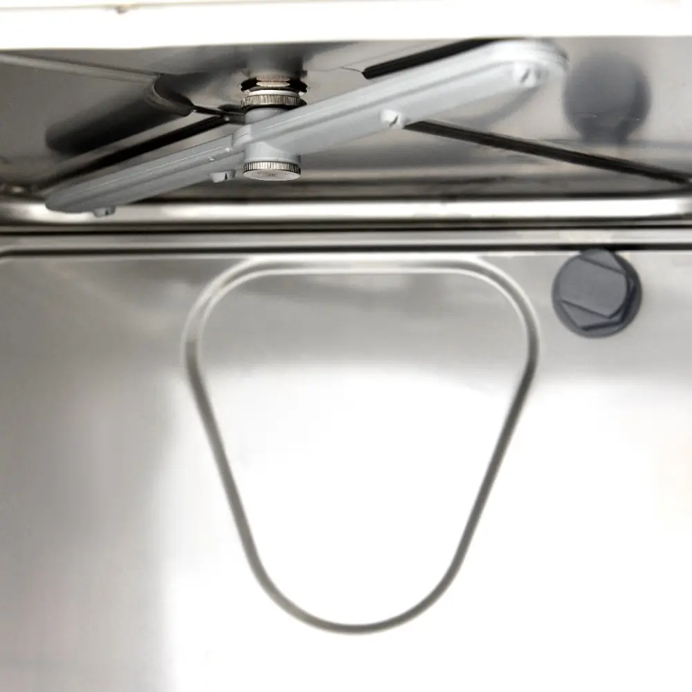 Tato prémiová myčka skla je vyrobena z nerezové oceli a mycí rameno a filtr nečistot jsou vyrobeny z ABS, takže všechny části se snadno čistí. Můžete používat různé druhy tekutých mycích a oplachovacích prostředků. Součástí dodávky je příslušenství: dva koše na sklenice 35 x 35 cm, vložka na příbory, vložka na talíře a přívodní a vypouštěcí hadice. Tento model je dodáván s čerpadlem na oplachování skla, mýdlovým čerpadlem a vypouštěcím čerpadlem.