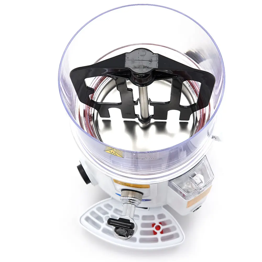 S tímto dávkovačem na bílou čokoládu snadno vydáte 5 litrů horké čokolády. Má také systém ohřevu bain marie, který zajišťuje, že se čokoládové mléko ohřívá postupně a nepřipaluje se. Díky kontinuálnímu rotačnímu míchacímu mechanismu je zabráněno tvorbě sraženin a ucpávání výpustného kohoutku.