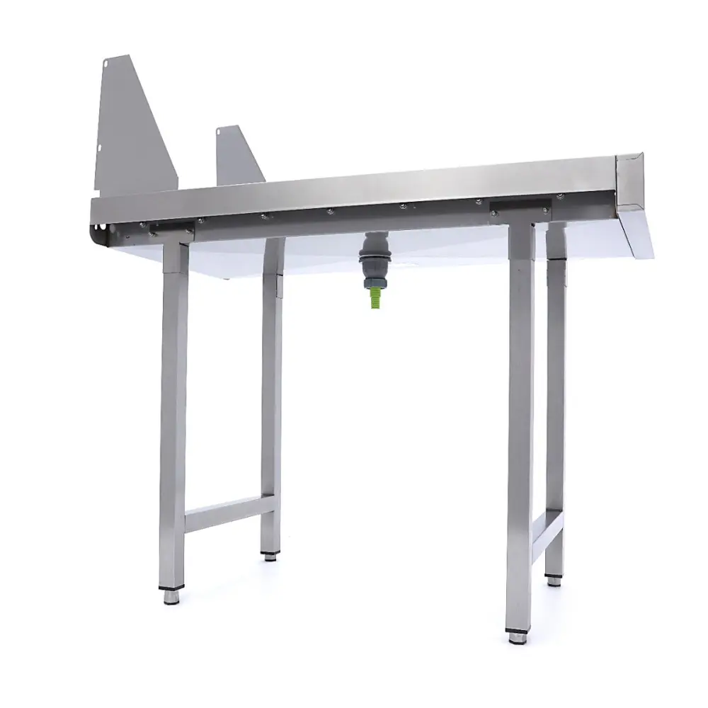 Tento válečkový stůl je vyroben z nerezové oceli, která je známá svou odolností a snadnými čisticími vlastnostmi. Připojený motor pohybuje válečky, což usnadňuje výstup čistého nádobí z myčky bez jakýchkoli komplikací.