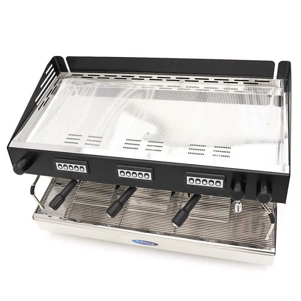 Tento kávovar na espresso je přínosem pro každé stravovací zařízení. Nejenže má řadu funkcí, ale je také velmi spolehlivý. Kryt je vyroben z kovu s černou povrchovou úpravou a dodává mu luxusní a elegantní vzhled. Má bojler o objemu 18 litrů, což znamená, že je schopen uvařit až 540 šálků za hodinu. Je také vybaven trojitou skupinovou hlavou s komorou pro přímou předspaření. Pro každou skupinu jsou k dispozici čtyři možnosti dávkování kávy: espresso, velká káva, dvě espressa a dvě velké kávy, takže si můžete vybrat tu správnou přípravu kávy pro svého zákazníka. Odkapávací filtr je vyroben z chromu a prostorná odkapávací miska je vyrobena z nerezové oceli.
