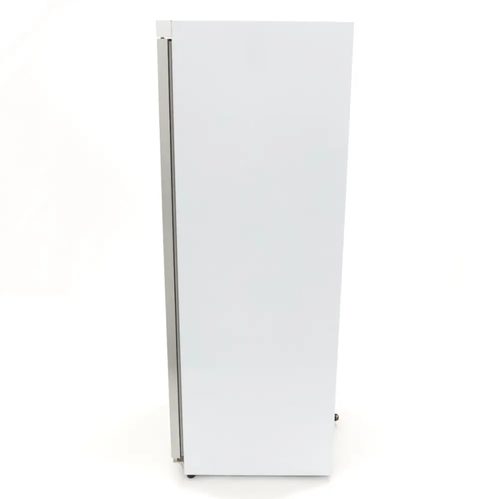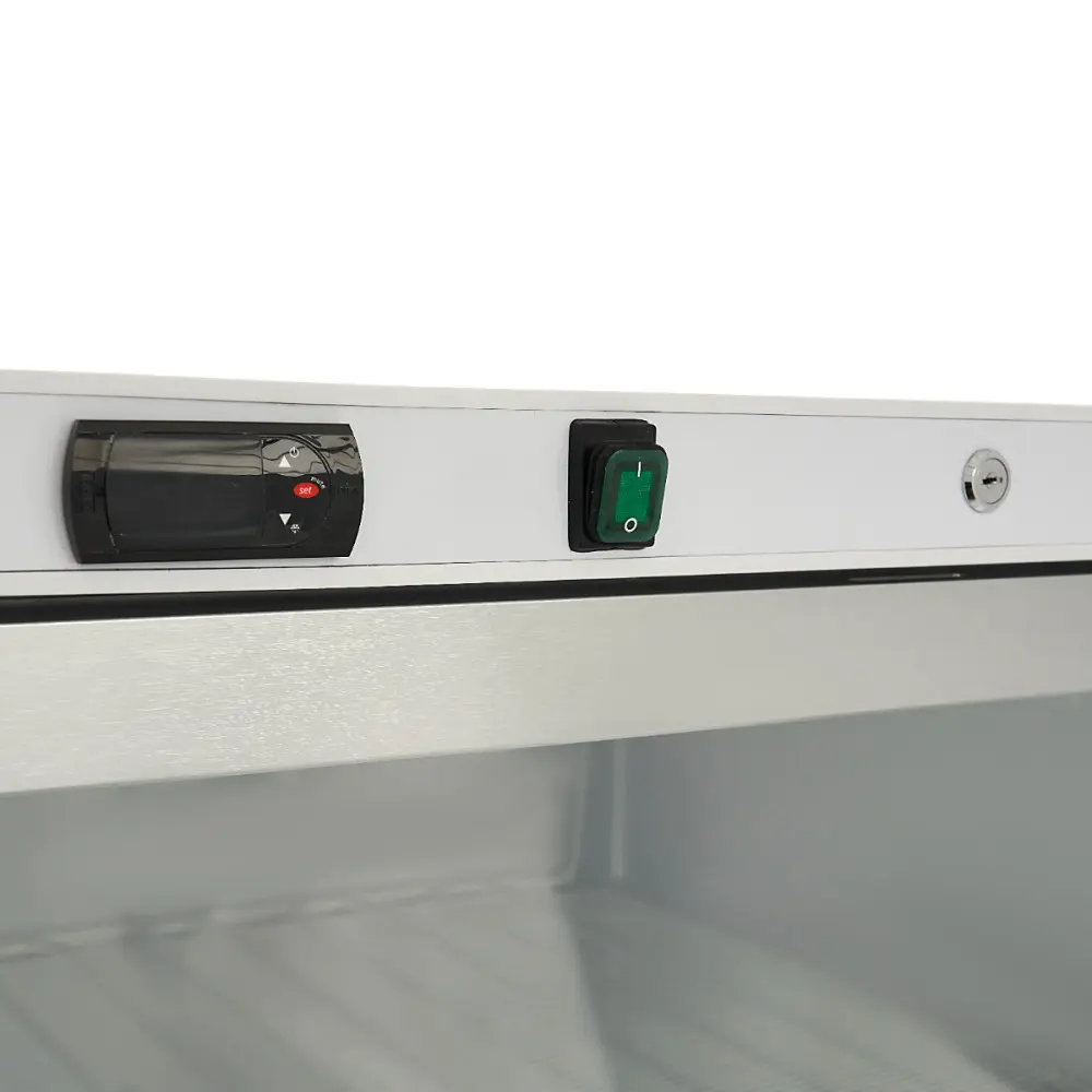 Tato bílá mraznička se skleněnými dveřmi má celkový objem 600 litrů. Je vybavena digitálním displejem a šesti pevnými policemi, které zajišťují rovnoměrně rozdělené plochy pro uchování produktů ve zmrazeném stavu až do doby, kdy je potřeba. Je také vybavena dvěma nastavitelnými předními nožičkami a dvěma zadními kolečky, díky nimž ji lze v případě potřeby snadno přemístit.