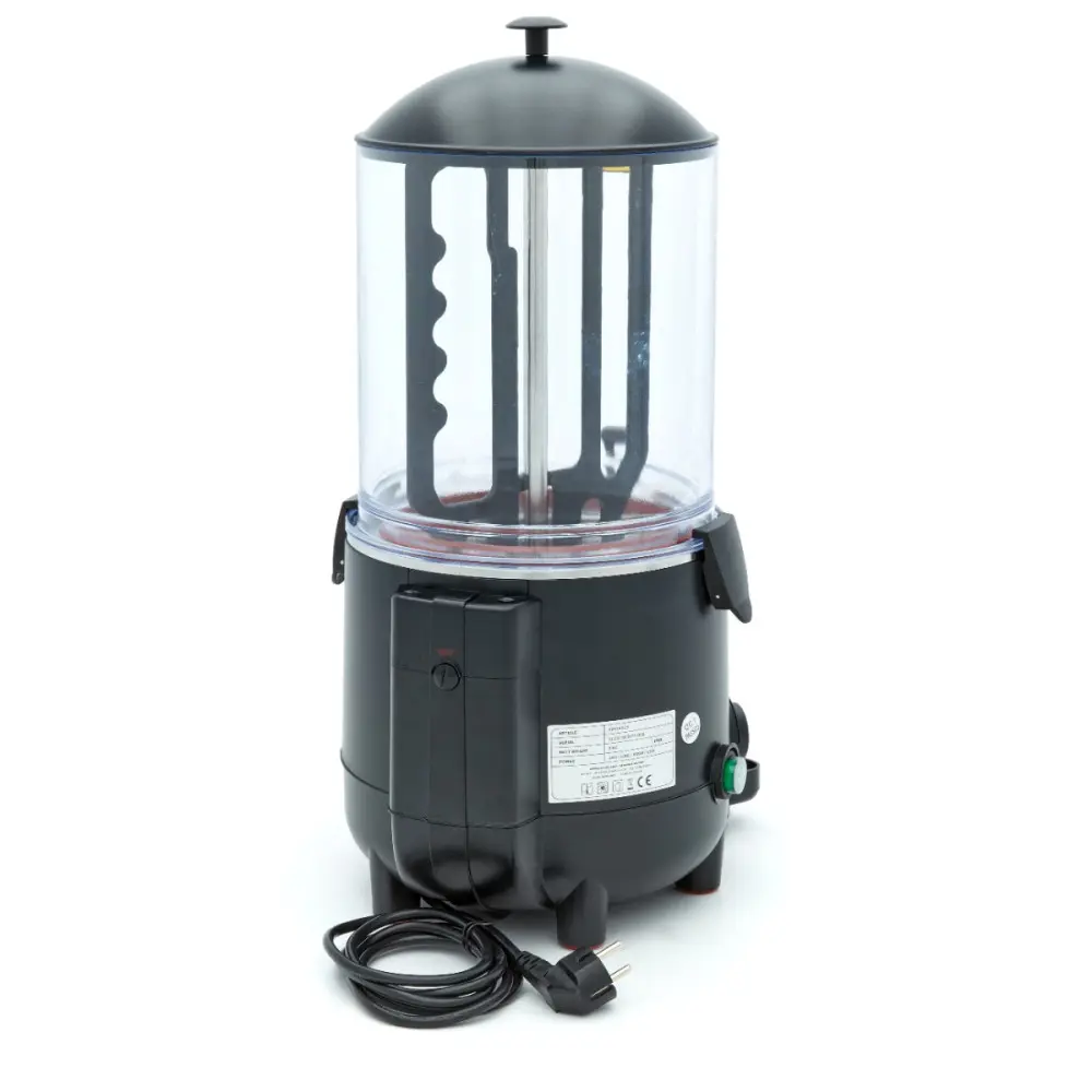 S tímto dávkovačem černé čokolády můžete snadno vydat 10 litrů horké čokolády. Má také systém ohřevu bain marie, který zajišťuje, že se čokoládové mléko ohřívá postupně a nepřipaluje se. Díky kontinuálnímu rotačnímu míchacímu mechanismu je zabráněno tvorbě sraženin a ucpávání výpustného kohoutku.