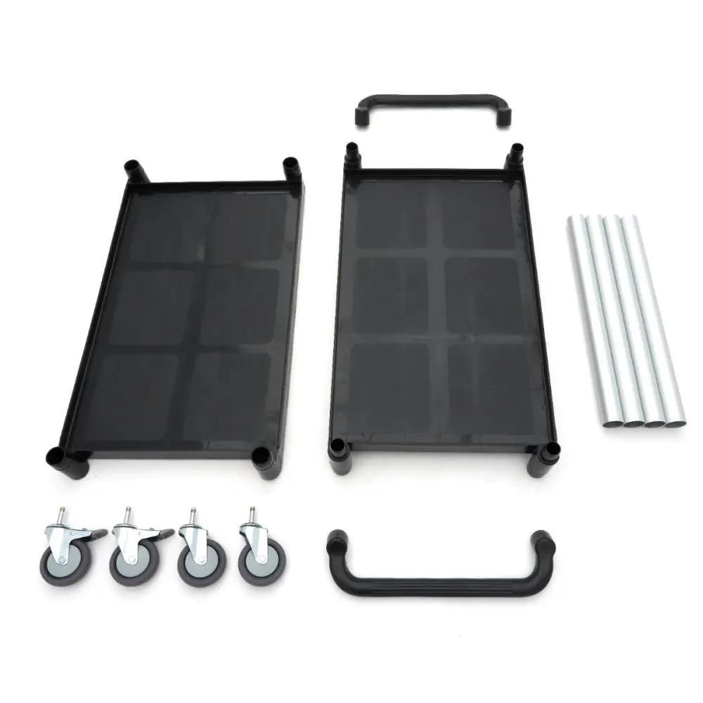 Tento servírovací vozík vám ušetří spoustu chůze a zvedání, protože práci za vás odvede servírovací vozík. Je ideální pro přepravu a servírování jídel. Servírovací vozík je také výborným pomocníkem při úklidu špinavého nádobí v kuchyni. Tento profesionální servírovací vozík je vybaven dvěma plastovými policemi.