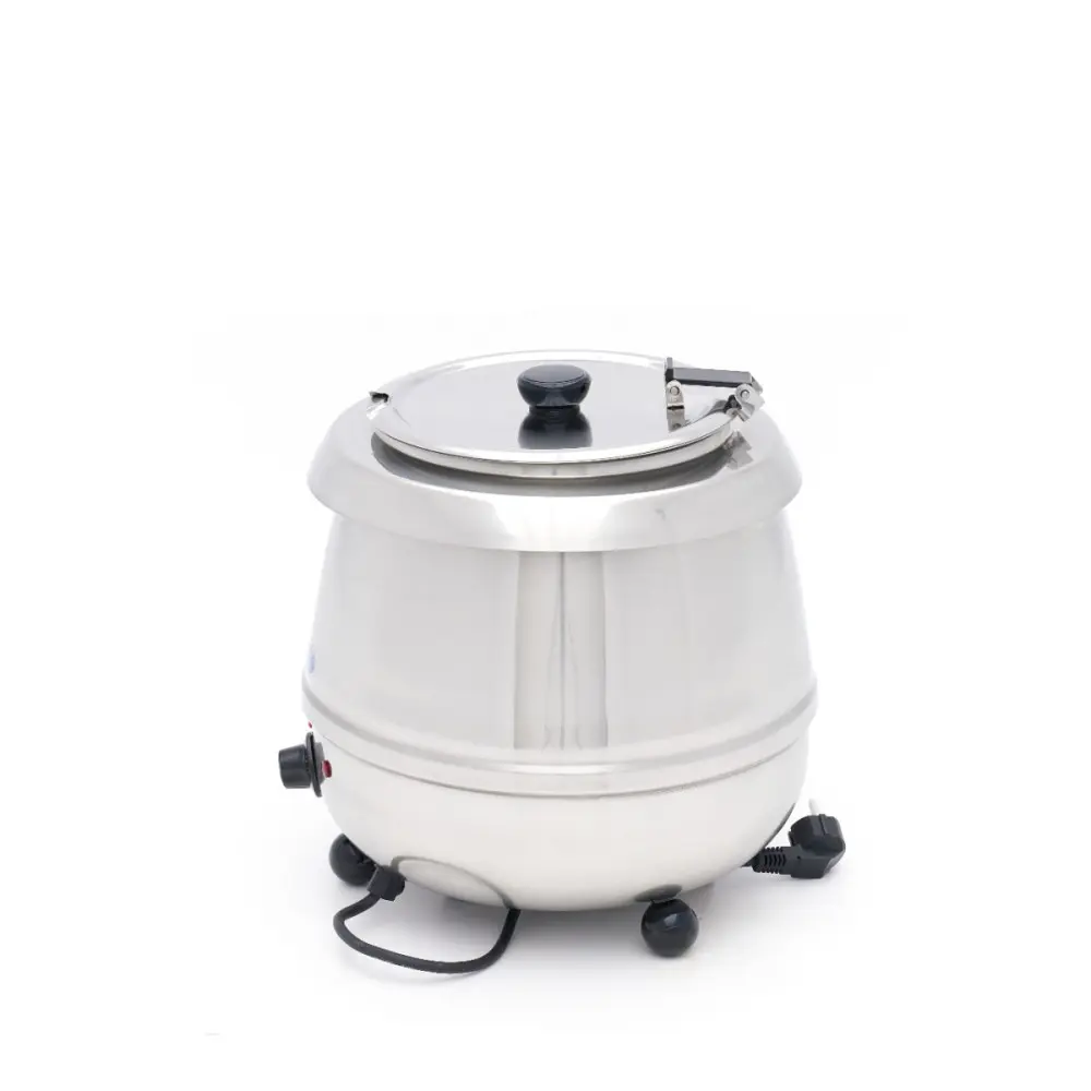 Elegantní design z nerezové oceli vyzařuje profesionalitu a skvěle zapadne do každého moderního bufetového zařízení. Ať už pracujete v hotelu, kavárně nebo cateringové společnosti, tato konvice na polévku v sobě spojuje snadné používání s vizuální přitažlivostí. Víko s integrovaným otvorem pro naběračku usnadňuje samoobsluhu, zatímco gumové nožičky zajišťují stabilitu na jakémkoli povrchu.
