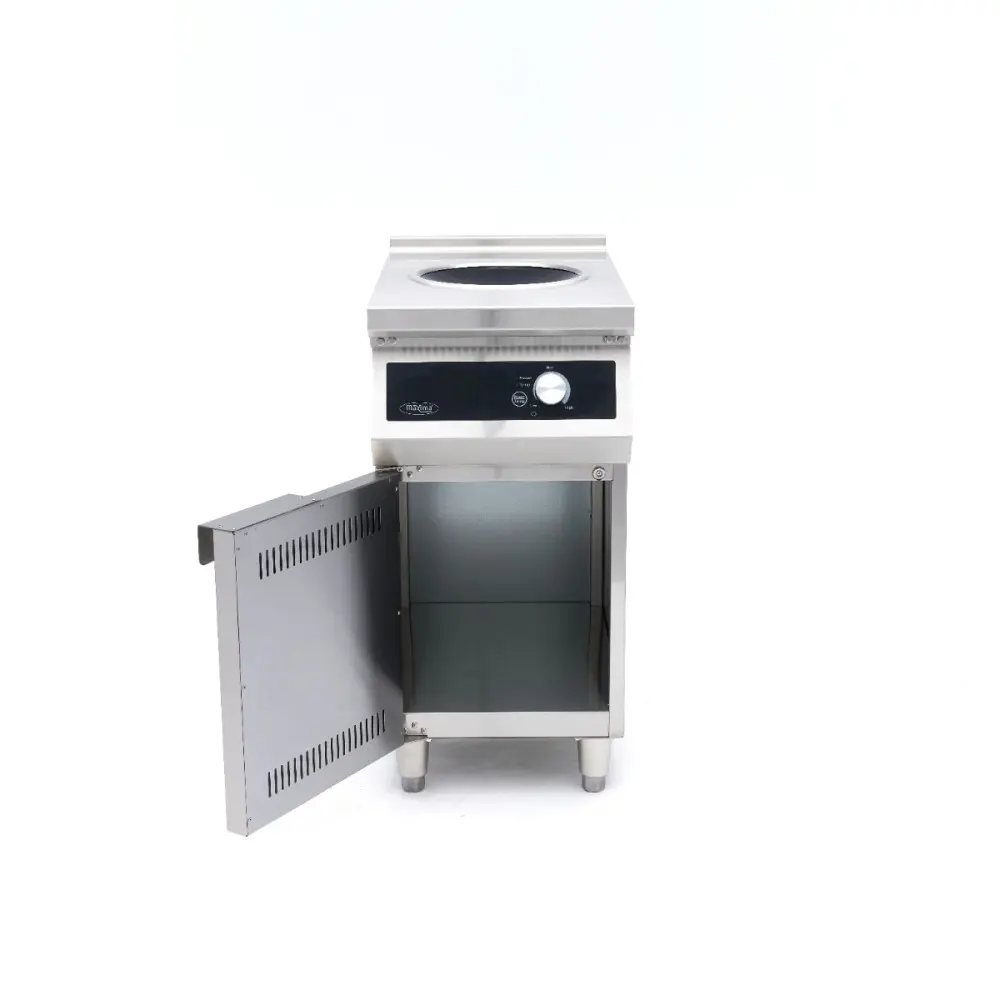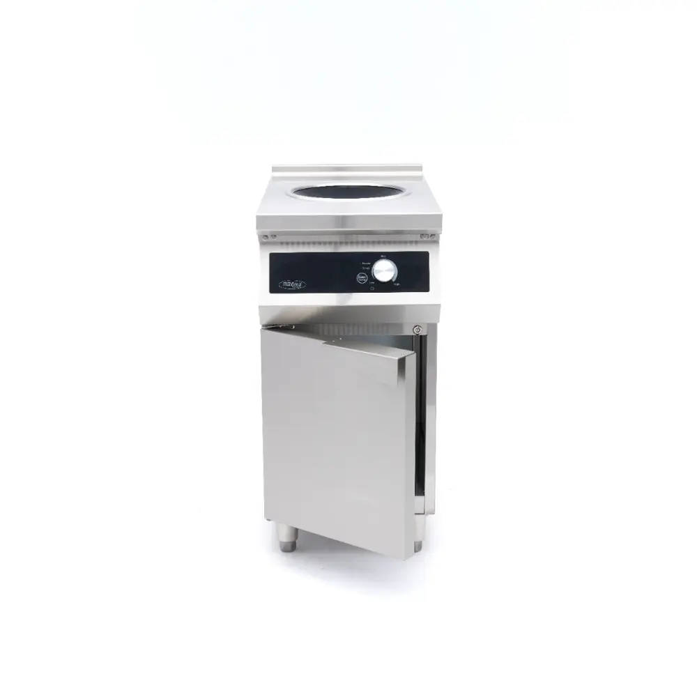 Hledáte výkon, přesnost a další úložný prostor? Zvolte tento profesionální indukční vařič wok Maxima se spodní skříňkou.