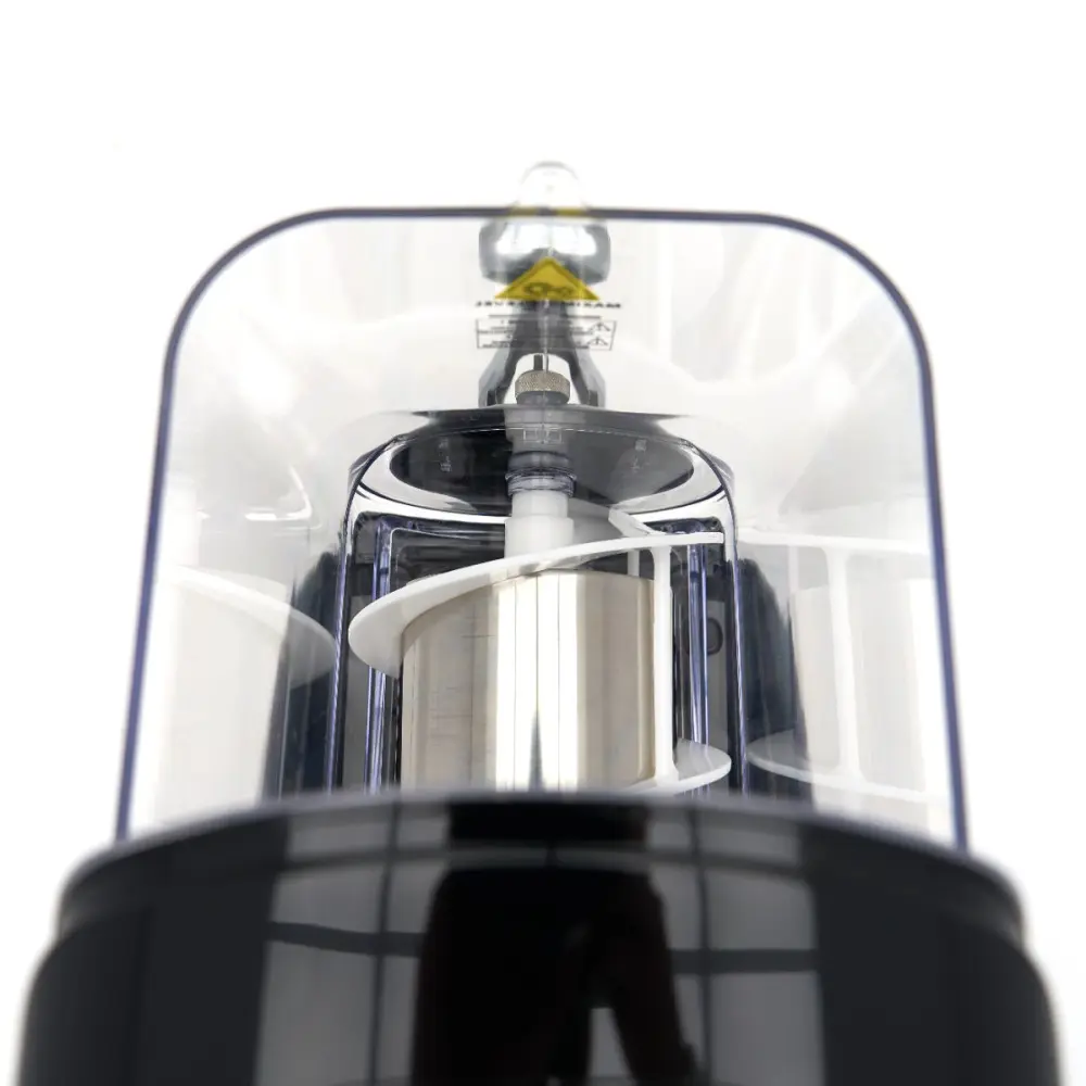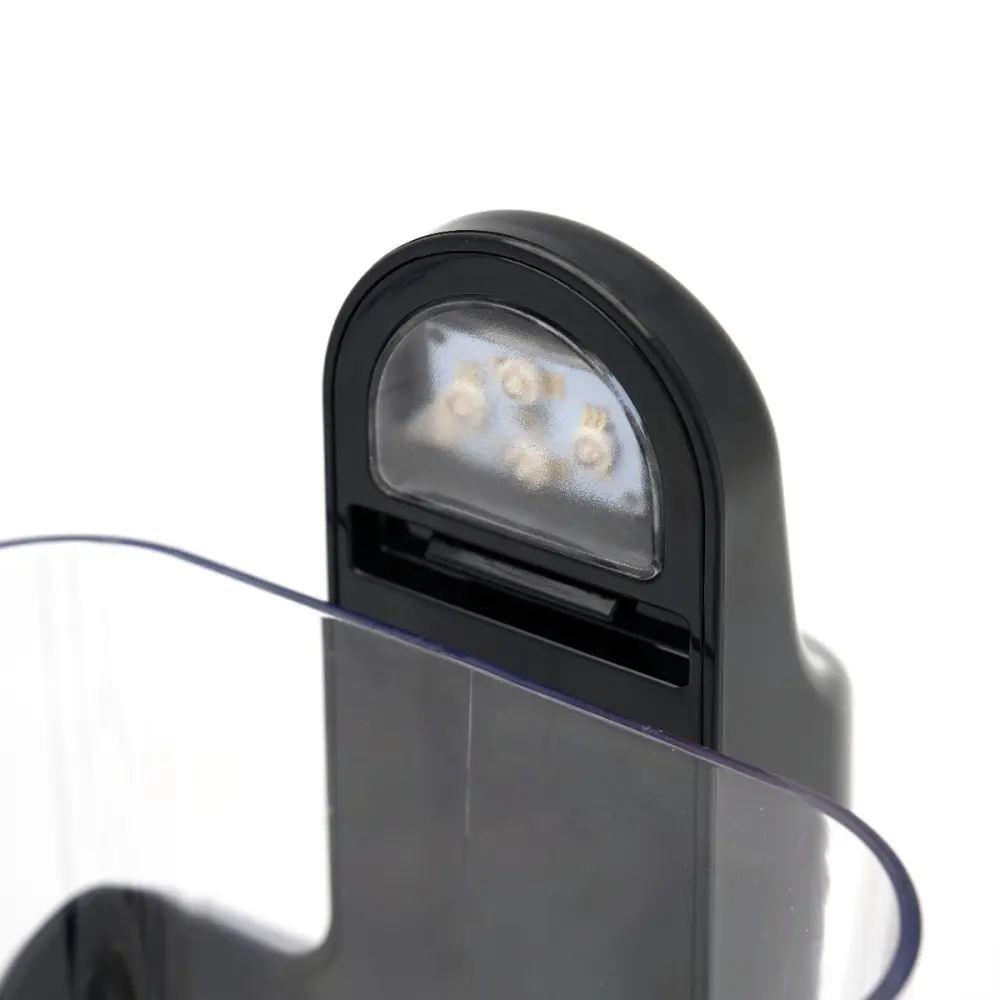 Na digitálním displeji můžete zvolit požadovaný režim: "ICE" (pro přípravu břečky), "COOL" (pro chlazené nápoje), "CLN" (pro čištění přístroje na výrobu břečky) a "STOP". V režimu "ICE" nastavte tloušťku břečky pomocí tlačítek plus a minus. Můžete si vybrat ze sedmi stupňů tloušťky, od tekuté až po tuhou břečku (-2 až -12 °C). V režimu "COOL" nastavte pomocí stejných tlačítek teplotu (1 - 10 °C). Při teplotách nižších než 0 °C se přístroj automaticky přepne do režimu regenerace pro dosažení optimálního výkonu. Displej se po 1 minutě zablokuje a lze jej znovu aktivovat stisknutím tlačítka osvětlení po dobu tří sekund. Můžete si vybrat z 63 barev osvětlení nádržky, takže barva pro každou příležitost.