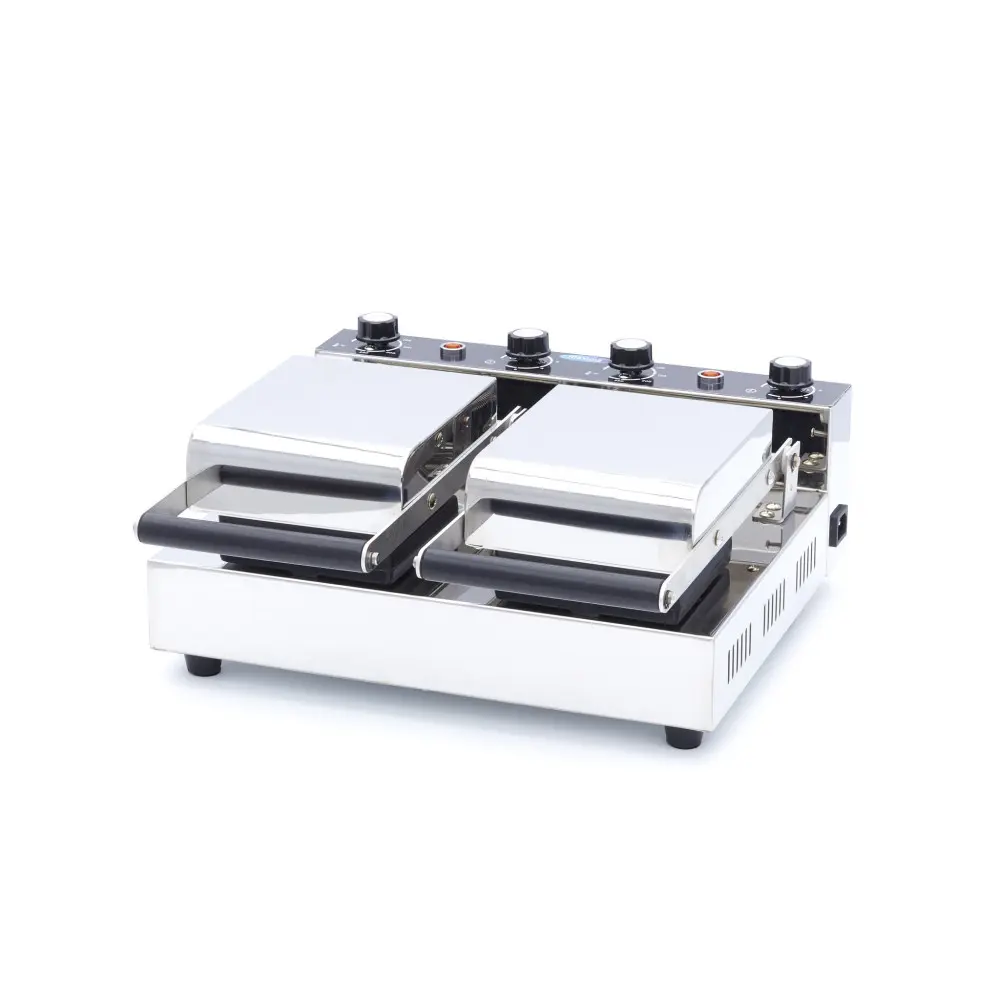 Tento přístroj se ovládá stejně snadno jako jakýkoli jiný panini maker od společnosti Maxima. Každý pečicí plech lze ovládat samostatně pomocí nastavitelného termostatu v rozmezí 50 až 300 °C a jeho součástí je i časovač. Díky výkonnému topnému tělesu se pečicí plech rychle zahřeje. Částečně díky tomu je tento panini maker vhodný pro všechny typy gastronomických zařízení od kaváren po cukrárny a samozřejmě zmrzlinárny. Díky hygienickému provedení je také čištění hračkou. Vnější povrch je vyroben z nerezové oceli, takže jej lze snadno otřít hadříkem. Pečicí plech je vyroben z hliníku a je opatřen nepřilnavou vrstvou. Snadno se čistí kartáčkem, houbičkou nebo vlhkým hadříkem.